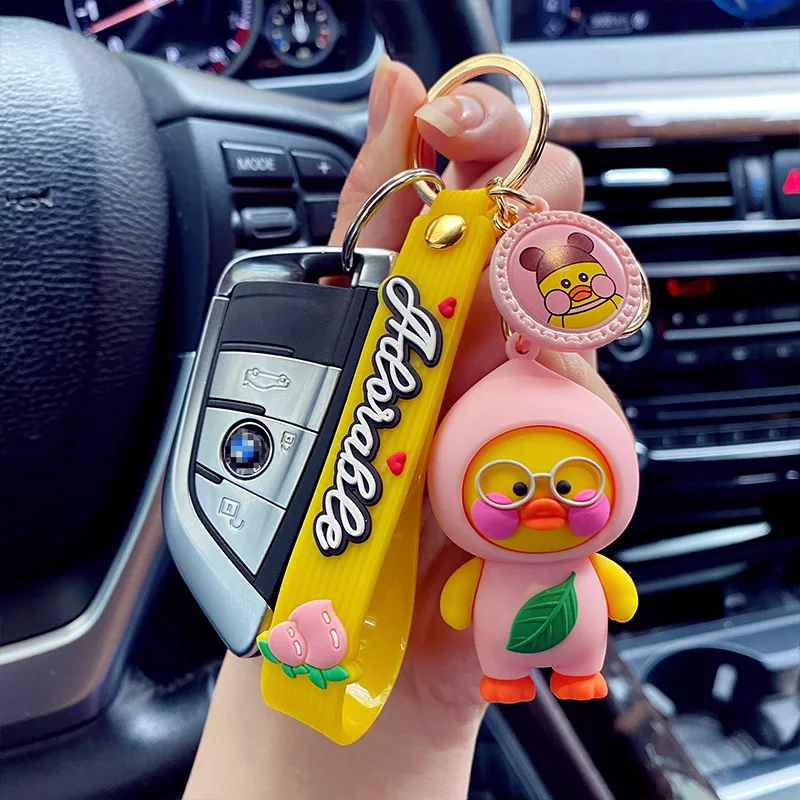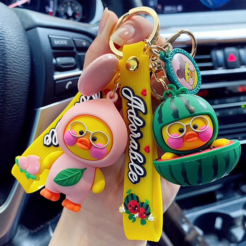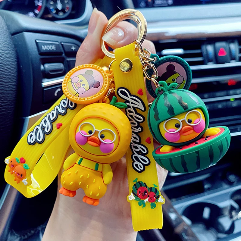 Cute Fruit Duck Keychain Simple Fashion Cartoon Animal Key Holder Women Couple Bag Car Pendant Key Ring Accessories Gift
