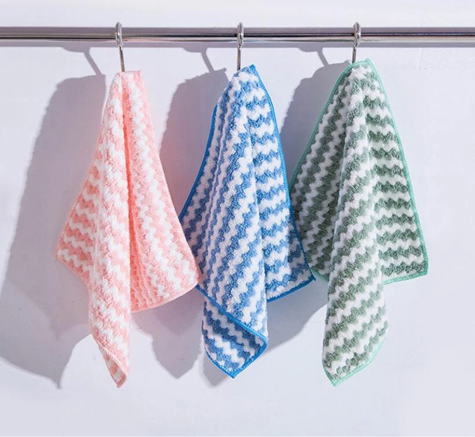 Полосатое полотенце для мытья посуды из кораллового флиса, впитывающая ткань, кухонные чашки для посуды, очищающая тряпичная губка