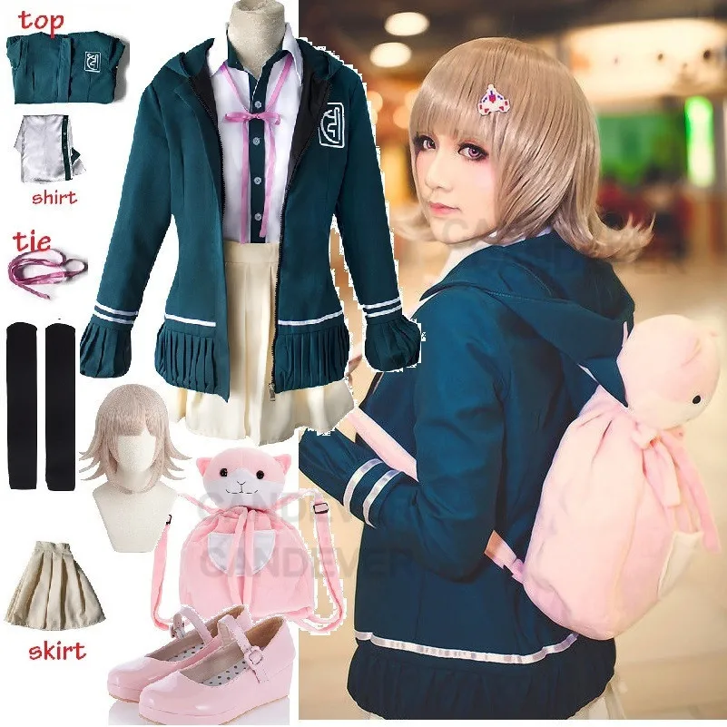 Chiaki Nanami Косплей Костюм Danganronpa 2 рюкзак головной убор парик японская школьная форма аниме Хэллоуин костюм для женщин и девочек