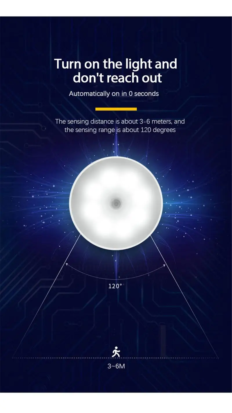 + Индукция корпуса: светильник включается при ходьбе возле светильник. Затем он выключается после того, как вы пройдете мимо.