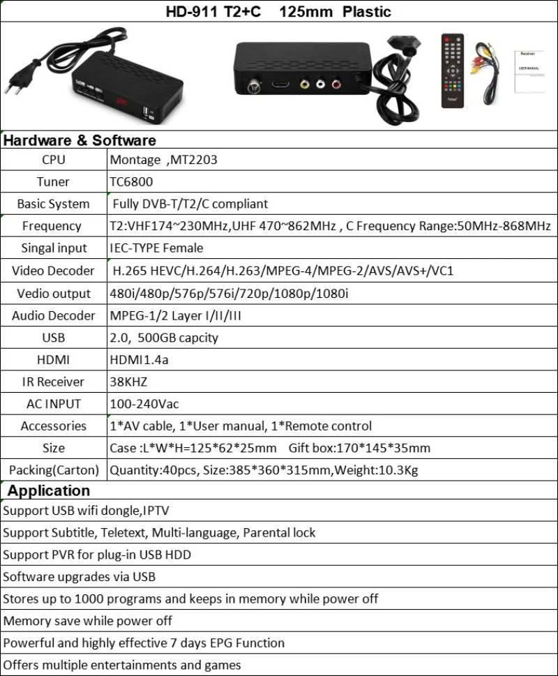 Accessories:1*AV cable, 1*User manual, 1*Remote control