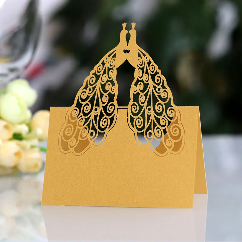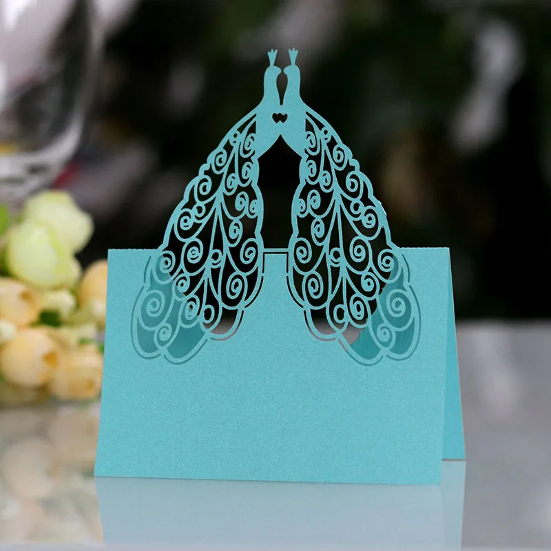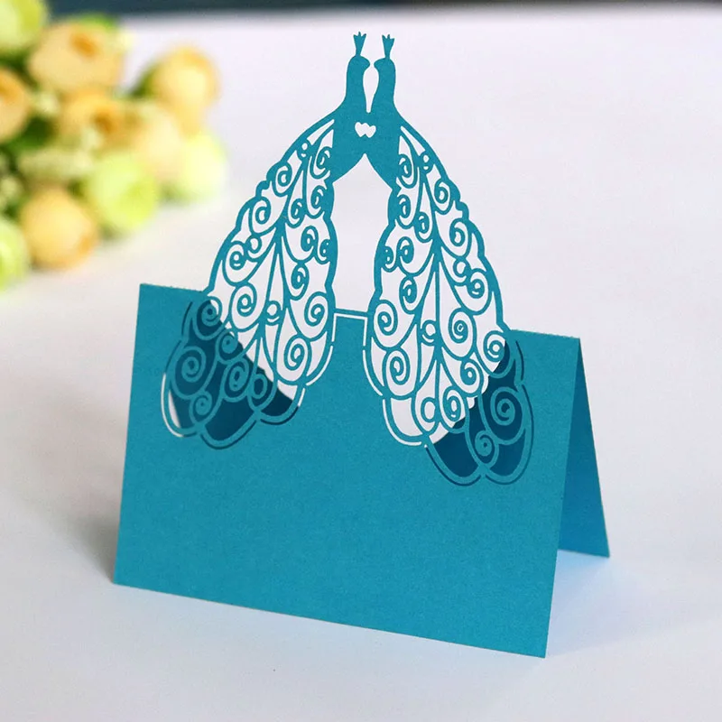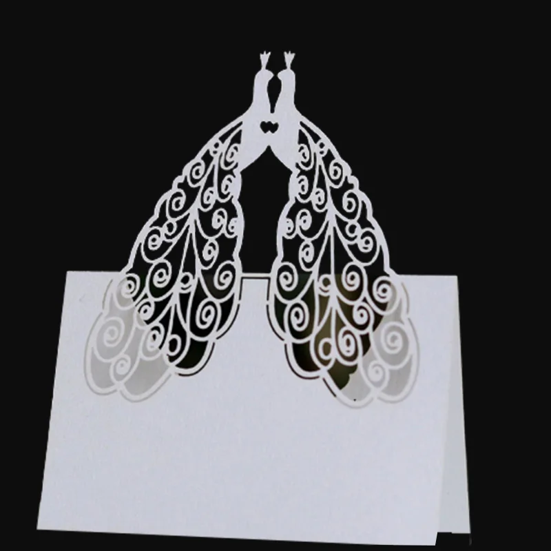50 шт. Павлин лазерная резка, настольный Имя Место карты открытки кружева имя, сообщение карта установки одежда для свадьбы, дня рождения Свадебный декор