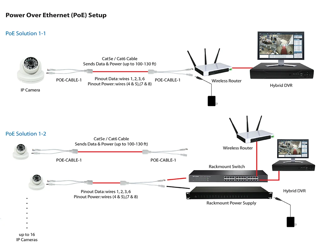 Кабель адаптер PoE Power Over Ethernet 100 м для Hikvision/Cisco/UBNT