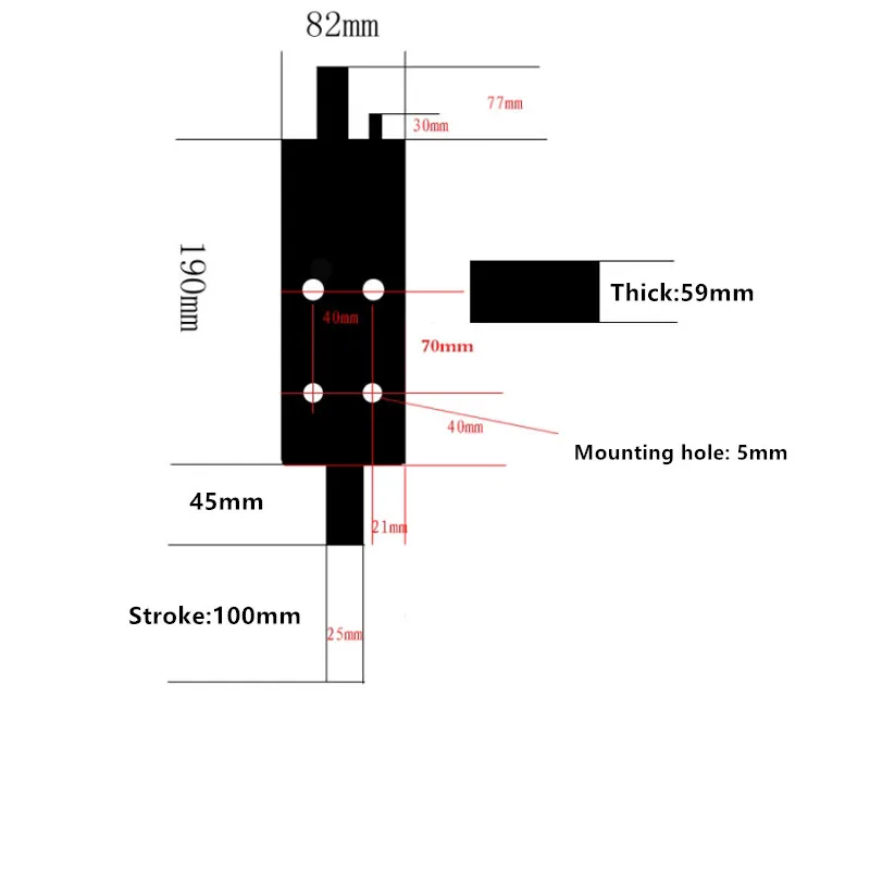 1. Этот станок для плазменной резки Z-axis torch lifter управляется двигателем постоянного тока для подъема факела вверх и вниз 2. Самая главная часть устройства, которая состоит в том, чтобы сохранить точность резки машины и поддерживать функцию позиционирования плазменной дуги, оснащена NPN бесконтактными переключателями 3. Механическое движение этого подъемника сделано из Тайваньского TBI шарикового винта, стандартного линейного вала (SFC) и линейного слайдера на концах; Держатель изготовлен из подшипниковой стали, и крепится линейными слайдерами, который обеспечивает стабильность и вертикальность движения подъемника 4. Удобно устанавливать, работать просто, улучшая эффективность работы Определение штекера управления воздухом: 1 фут -- D +; (мотор положительный) 2 фута -- D -; (мотор отрицательный) 3 фута -- ноль; (позиционирование нормально открытый выход) 4 фута -- COM; (позиционирование нормально открытый выход) Примечание: Встроенный лимит (обратный диод) Параметры: 1. T-304 винт из нержавеющей стали 2. Включает джиг (диапазон факел 12 мм-38 мм) 3. Лифт внутри плазменной дуги позиционирования 4. Алюминиевый корпус, верхний и нижний алюминиевый лист толщиной 8 мм, формирующий центр обработки 5. Четырехъядерный разъем 6. Цвет: черный корпус распылителя 7. Рабочий ход: 100 мм 8. Рабочее напряжение: DC24V 9. Вес подшипника: 3 кг 10. Размеры: Длина 320 * Ш 80 * в 60 11. Размер монтажного отверстия Длина: межосевое расстояние между двумя отверстиями 40 мм