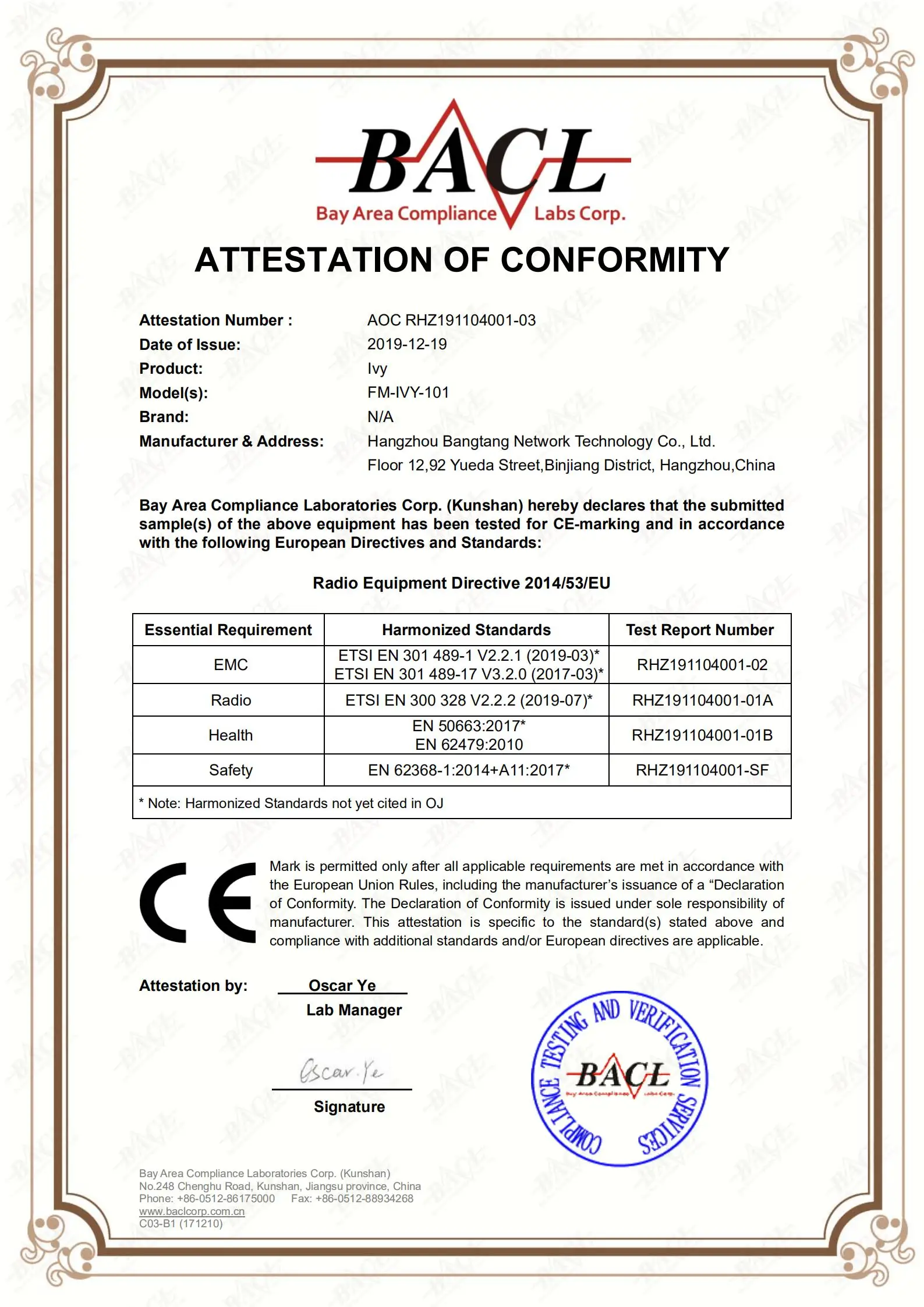 Сертификат продукта