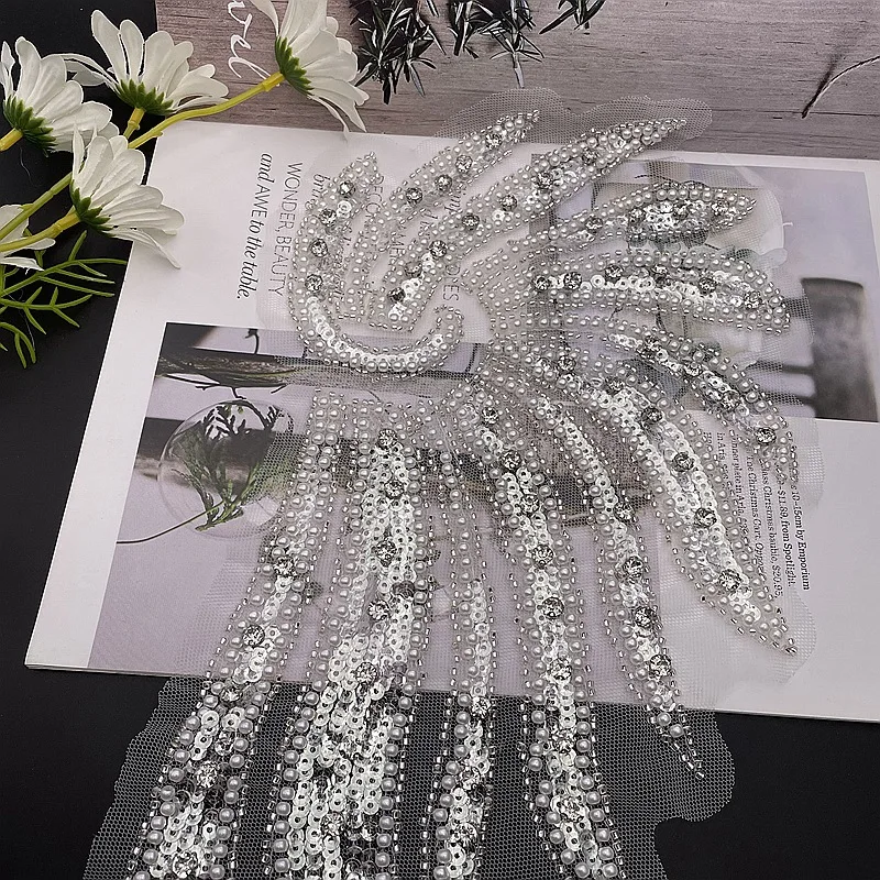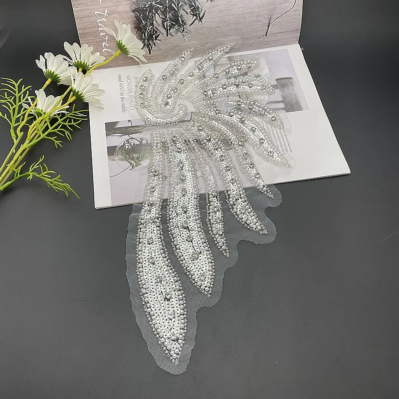 2 шт. (слева + справа) 3D белый цвет бисерная Кружевная аппликация с блестками ручной работы в форме крыльев блестящие стразы патчи для свадебного платья