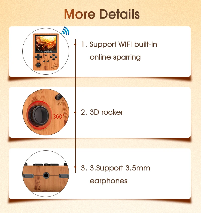 RG351V использует систему с открытым исходным кодом, с вибрационным мотором и идеально поддерживает для PSP/N64/PS1/MD и т. д. 50 видов форматов игр. Поддержка пользователей для загрузки соответствующего формата игры.