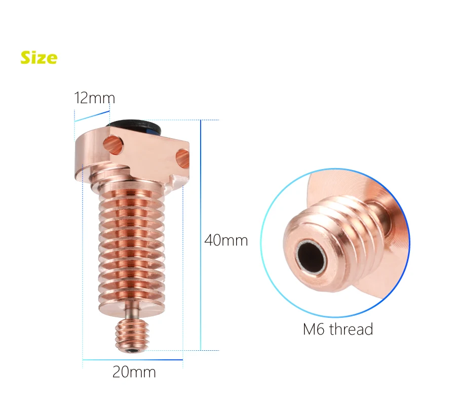 Это капля в все металлические конверсионные наборы для CR10 Hotend принтеров. Для установки требуется абсолютная нулевая модификация принтера. Наш уникальный охлаждающий блок уменьшает требования к площади для теплоотвода. Установив тонкие трубки из нержавеющей стали внутри блока охлаждения, тепло можно рассеивать быстрее, обеспечивая отличную теплоизоляцию между нагревателем и охлаждающим блоком. Согласно нашему тесту, Эффект такой же, как у сумасшедшего горячего конца, и он может напечатать идеально для PLA, ABS, PETG, TPU и других материалов. Для алюминиевого теплоотвода это означает, что Горячий Конец может быть легче, а медный теплоотвод с небольшим увеличением веса, но эффект рассеивания тепла лучше. Мы рекомендуем выбрать два различных материала теплоотвода для высокотемпературной печати и низкотемпературной печати для достижения наилучшего эффекта.