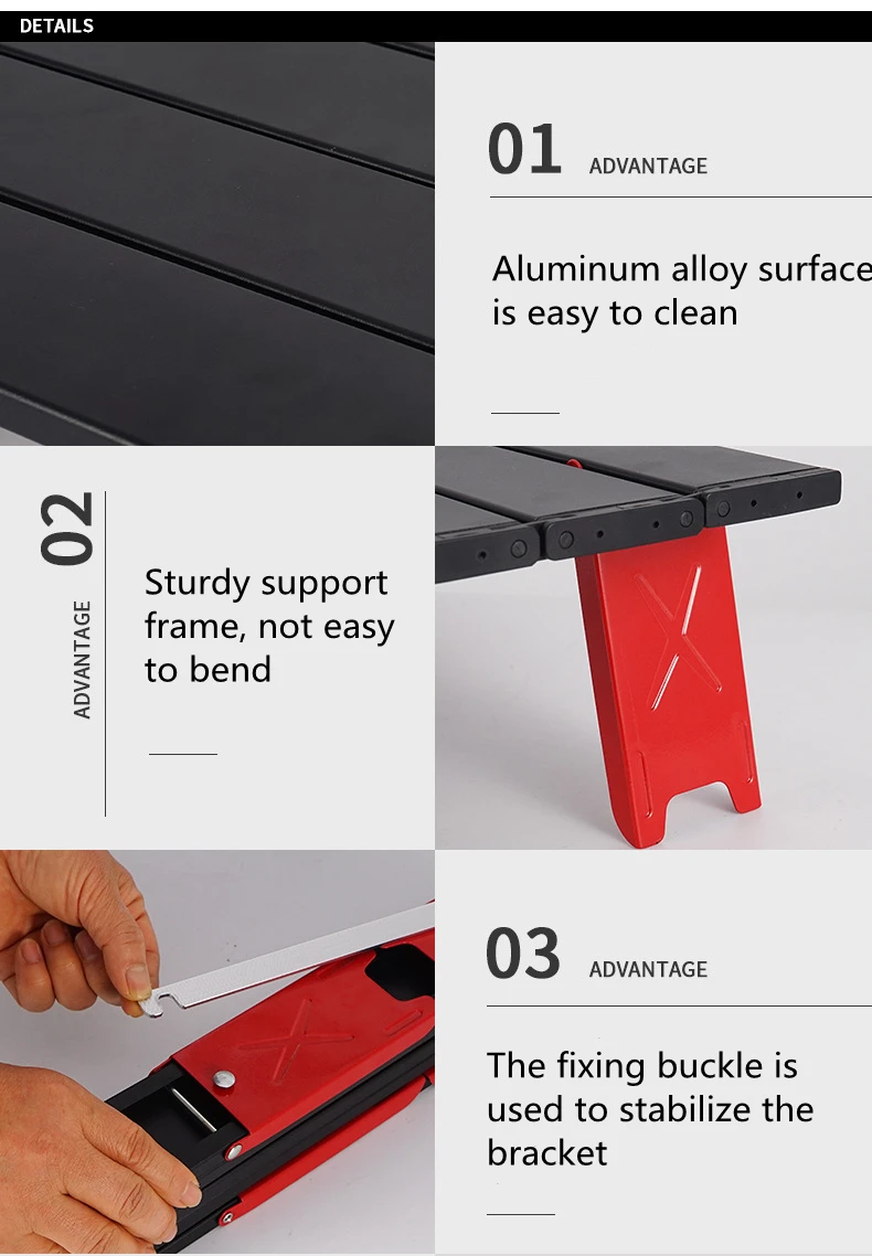 Особенности: 1. Изготовлен из высококачественного и долговечного алюминиевого сплава. 2. Складная конструкция позволяет легко открывать и складывать. 3. Используется для пеших прогулок на открытом воздухе, кемпинга, альпинизма, пикника, рыбалки и т. д. Характеристики: Тип изделия: складной стол Материал: алюминиевый сплав Складывается ли: Да Цвет: красный, черный, серебристый Размер в разложенном виде: 41,2*29*13 см Размер в сложенном виде: 41,2*5,5*6,7 см Посылка включает в себя: 1 * складной стол Примечания: 1. Допускается погрешность в 2-3% из-за ручного измерения. 2. Пожалуйста, обратите внимание на то, что размеры s светильник разница в цвете считается приемлемой, она может быть по светильник и с настройками экрана.