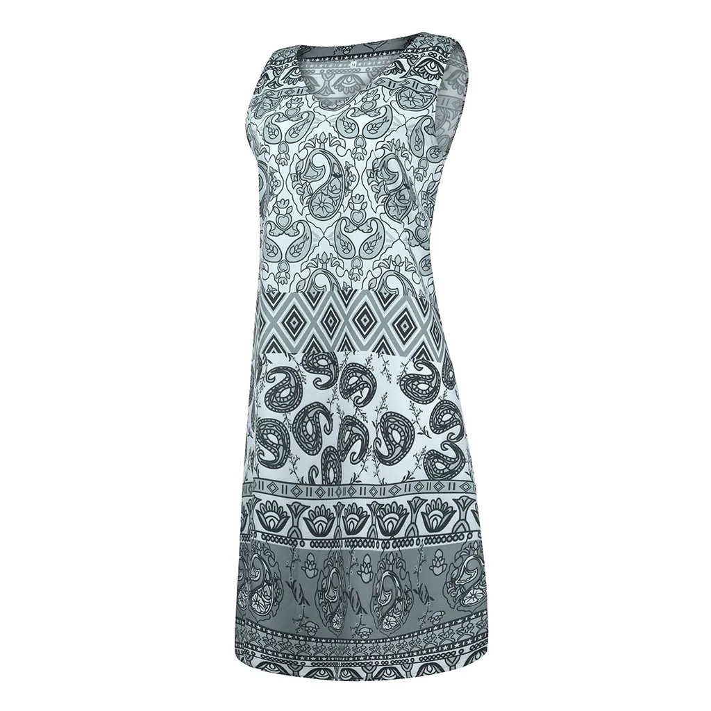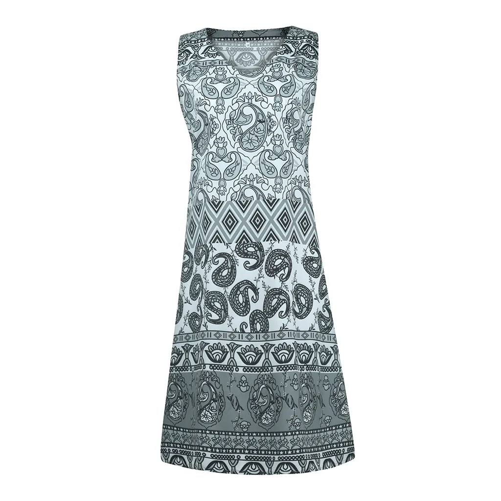 Женское летнее платье, винтажное свободное платье миди без рукавов с v-образным вырезом и принтом
