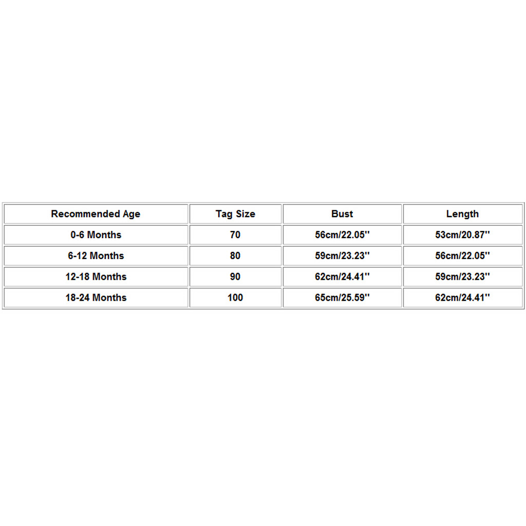 Рекомендуемый возраст Размер Бюст Длина 0-6 месяцев 70 56 см/22,05'' 53 см/20,87'' 6-12 месяцев 80 59 см/23,23'' 56 см/22,05'' 12-18 месяцев 90 62 см/24,41'' 59 см/23,23'' 18-24 месяцев 100 65 см/25,59'' 62 см/24,41''Очень красивое, элегантное украшение! можно подарить в качестве подарка,а так же как и помолвочное!себе заказывала в качестве подарка, очень понравилось!... Читать отзыв полностью...