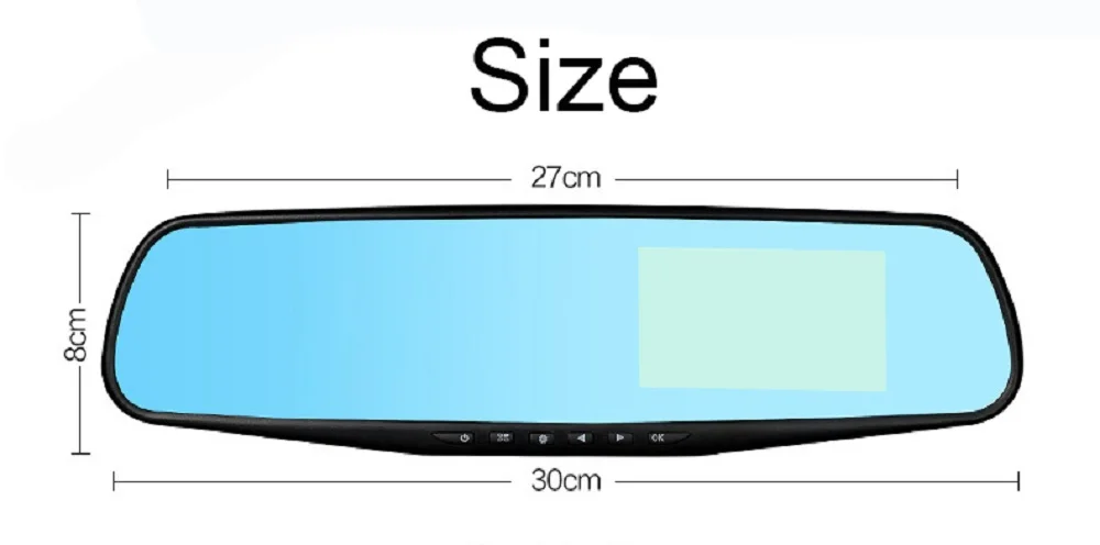 Тип установки: зеркало заднего вида, подходит для всех транспортных средств с зеркалом Экран (Дисплей) Размеры: 4,3 дюймов ЖК-дисплей Экран Набор микросхем (процессор/ЦП): Generalplus Датчик камеры: передний 2MP + задний 1MP Объектив камеры: передняя + задняя; 6 стекла + 4 стекла; Угол 170 градусов + угол 120 градусов; Диафрагма F2.2 + диафрагма F2.2 Разрешение видео: спереди: 1920*1080P @ 25 кадров в секунду; Сзади: 640*480P @ 25 кадров в секунду Разрешение фото: 12 м Видео Код: MJPG Аккумулятор: встроенный (встроенный аккумулятор очень маленький, не может поддерживать работу, только для экономии времени и настройки, пожалуйста, используйте оригинальное зарядное устройство при работе) Основные характеристики: g-сенсор, циклическая запись, обнаружение движения, монитор парковки, отображение времени и данных, широкий динамический диапазон, изображение на изображении, включение/выключение автоматически Карта памяти: карта Micro SD, класс 10 и 8 Гб до 32 Гб (не входит в комплект) Обновление задней камеры: Поддержка кабеля длиной до 10 метров Дополнительные характеристики: ночное видение, Белое Зеркало, синее зеркало