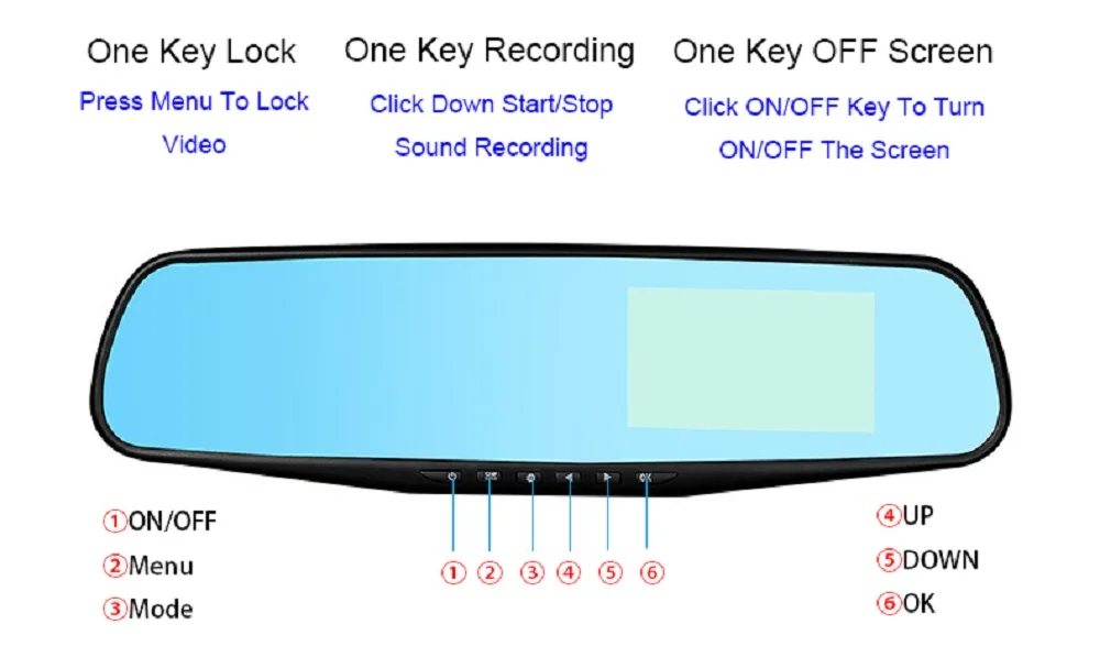 Запись hd-видео в режиме 1080P. Широкоугольный объектив фронтальной камеры может снимать четкое HD-видео. Видео и аудио Автоматически записываются в бесконечную петлю и сохранены на карте памяти. Запись дорожных происшествий, живописных путешествий, неожиданных моментов или любых социальных достойных видео.