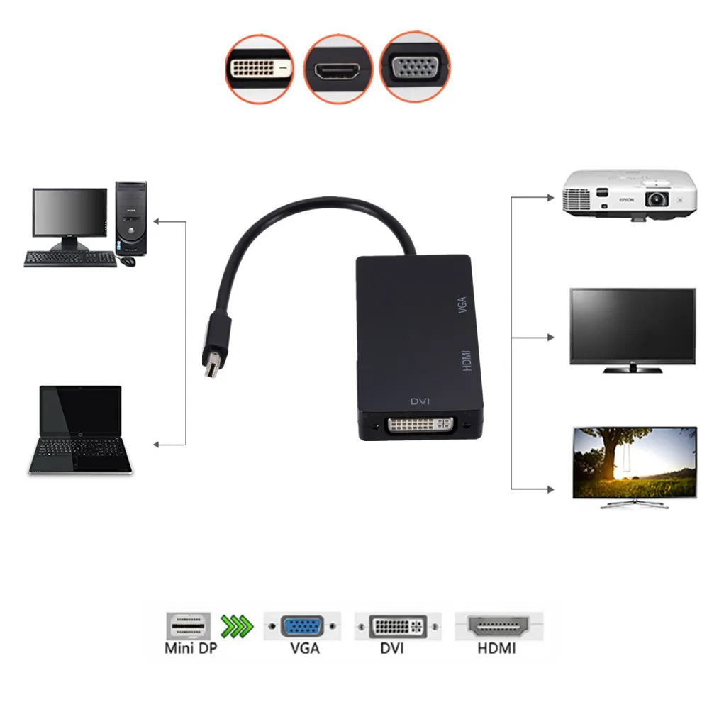 Примечание: 1.dp к HDMI VGA DVI кабель адаптера можно использовать только из DP HDMI, VGA и DVI. Нельзя использовать с HDMI, VGA и DVI на DP. 2. Используйте отдельно. Несколько интерфейсов могут быть несовместимыми, что приводит к невозможности отображения