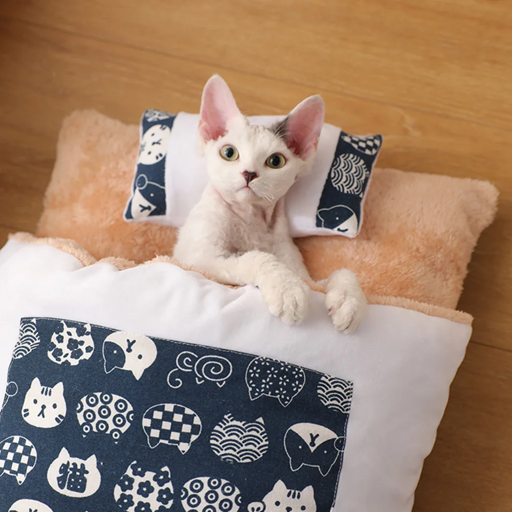 Зимняя теплая кровать для собак, мягкая флисовая моющаяся Съемная кровать для кошек, щенков, спальный мешок в японском стиле, подушка для дома