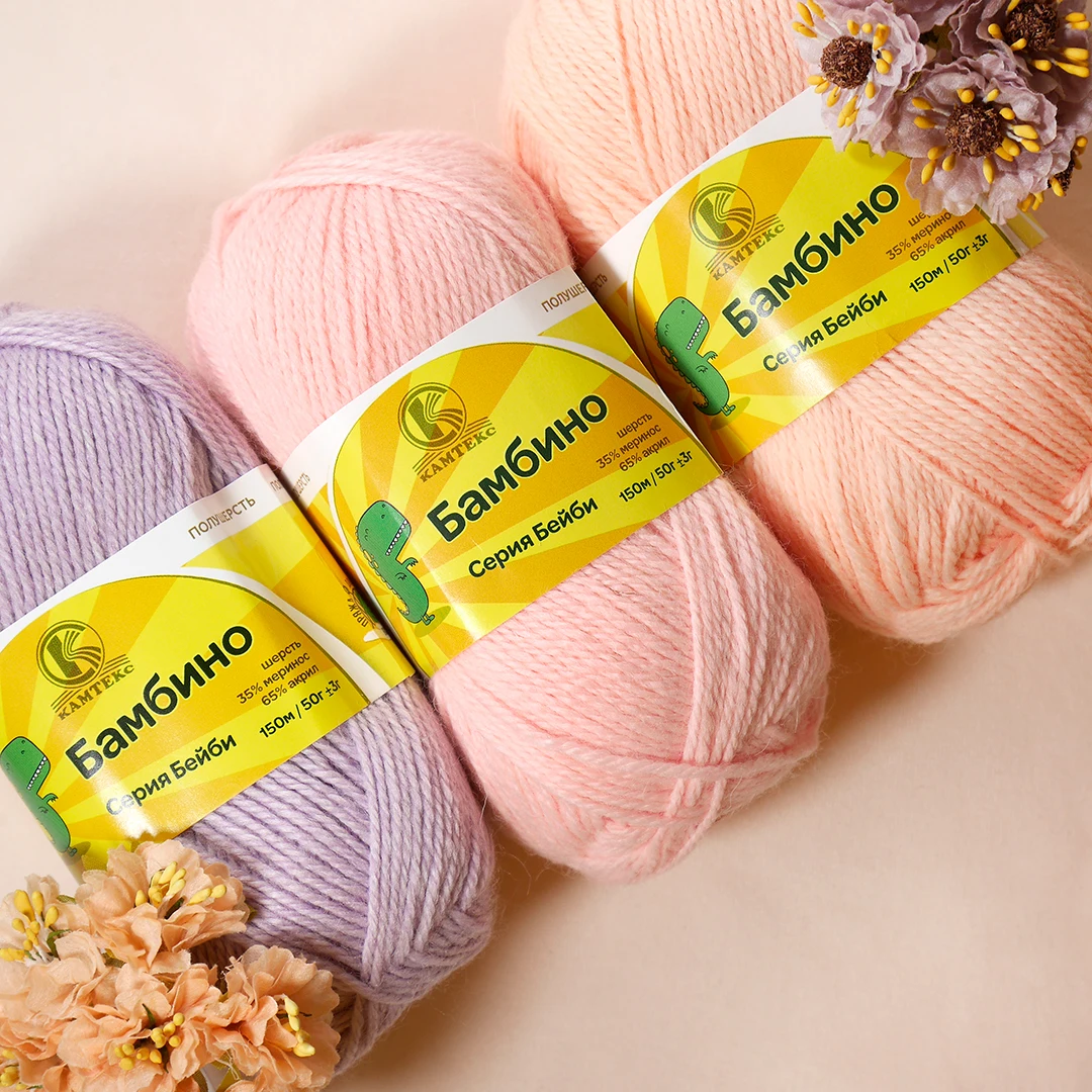 Теплая и практичная пряжа. Благодаря большему наличию в составе акрила, пряжа Бамбино не раздражает кожу и обладает гипоаллергенными свойствами. Идеально подойдет для вязания детям. Рекомендуемый размер спиц 3-3,5мм