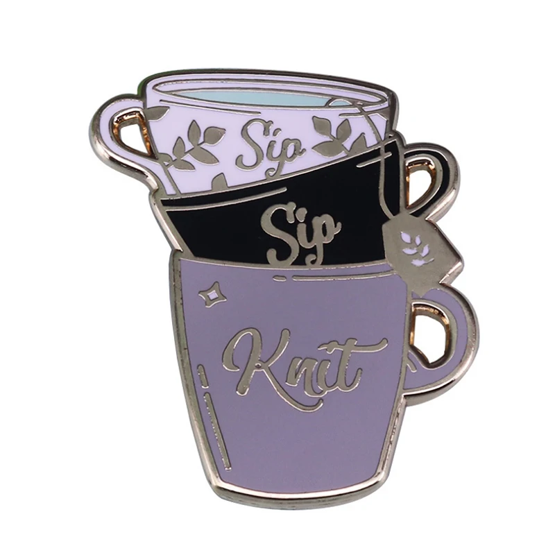 Жесткая эмалевая булавка Sip для вязания, забавные ювелирные изделия ручной работы, вязальные изделия, Золотая брошь для энтузиастов чая, модные простые булавки для лацканов