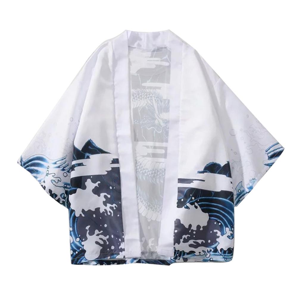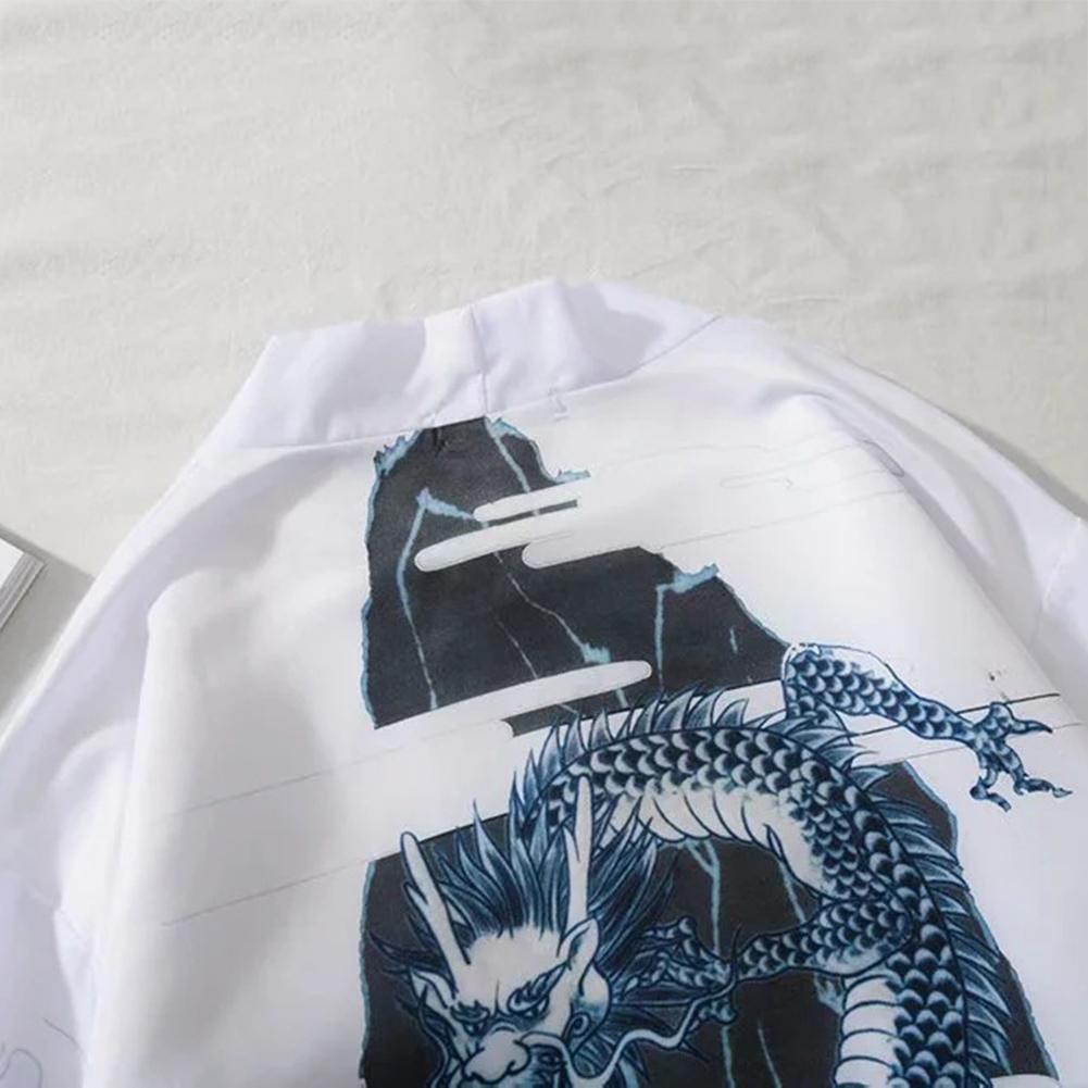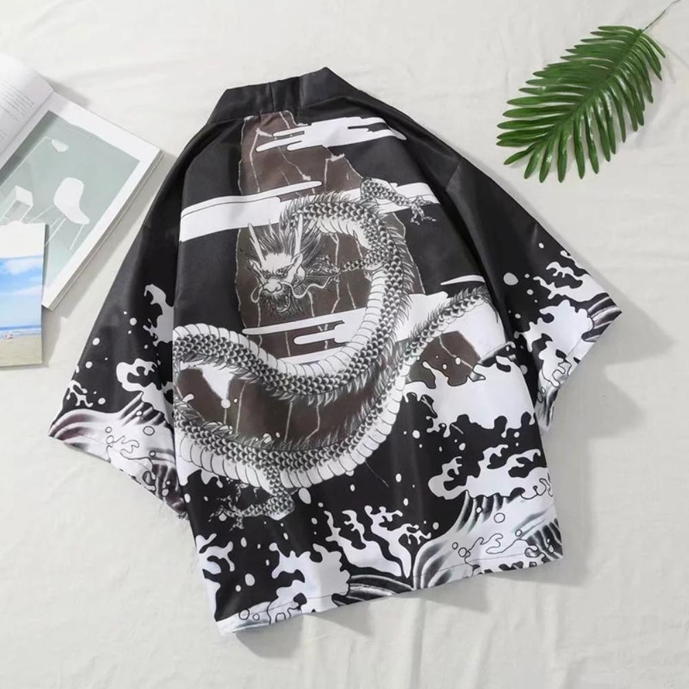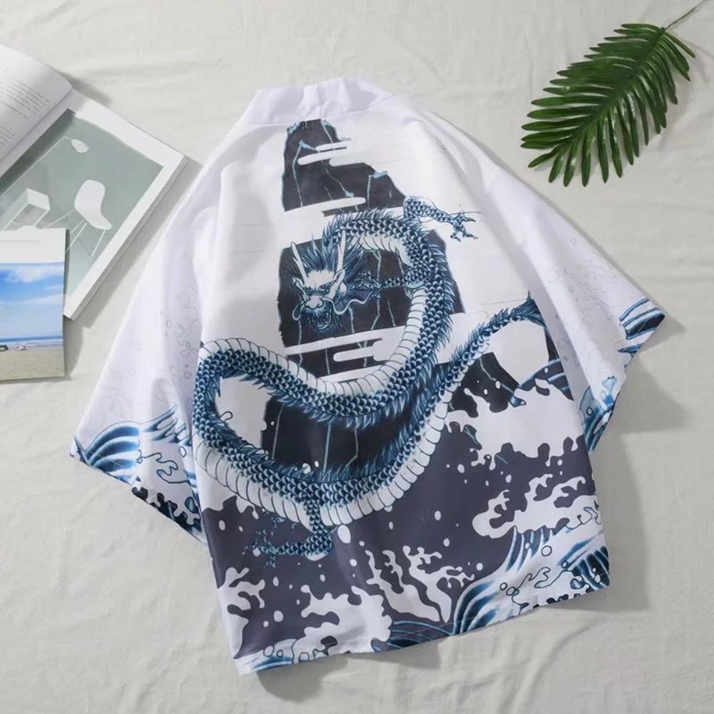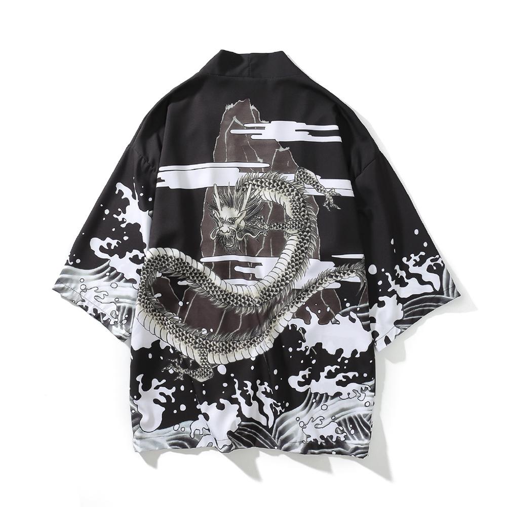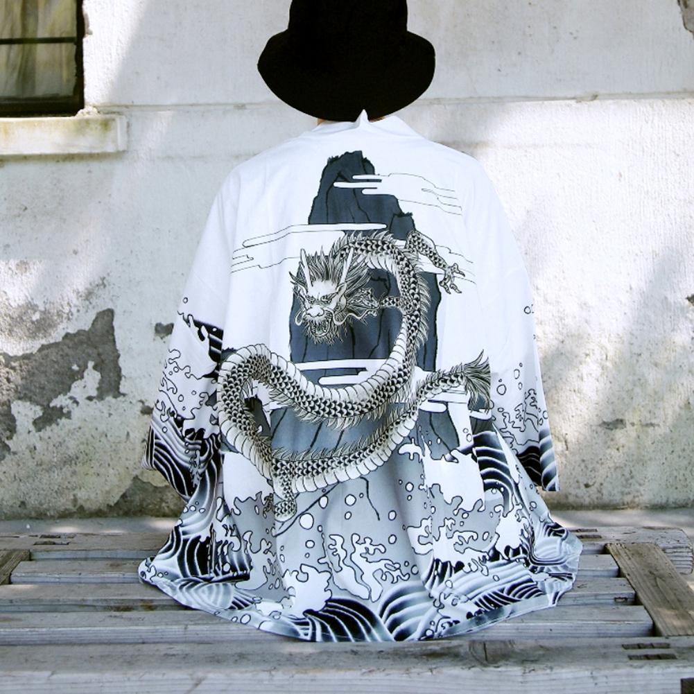 Повседневное мужское кимоно с рукавом 3/4 и волнистым драконом, кардиган Yukata, пальто, рубашка