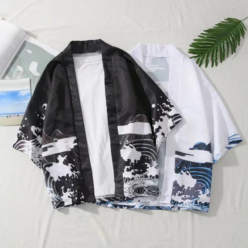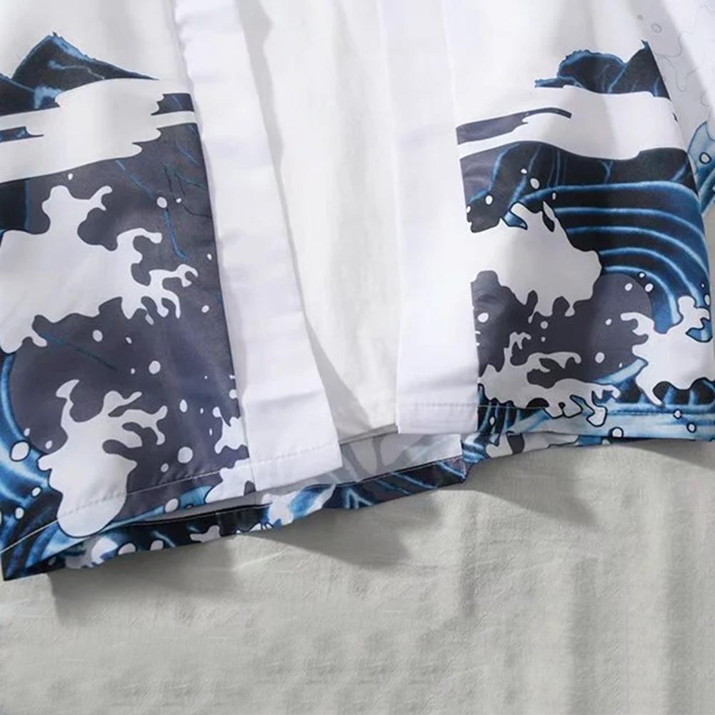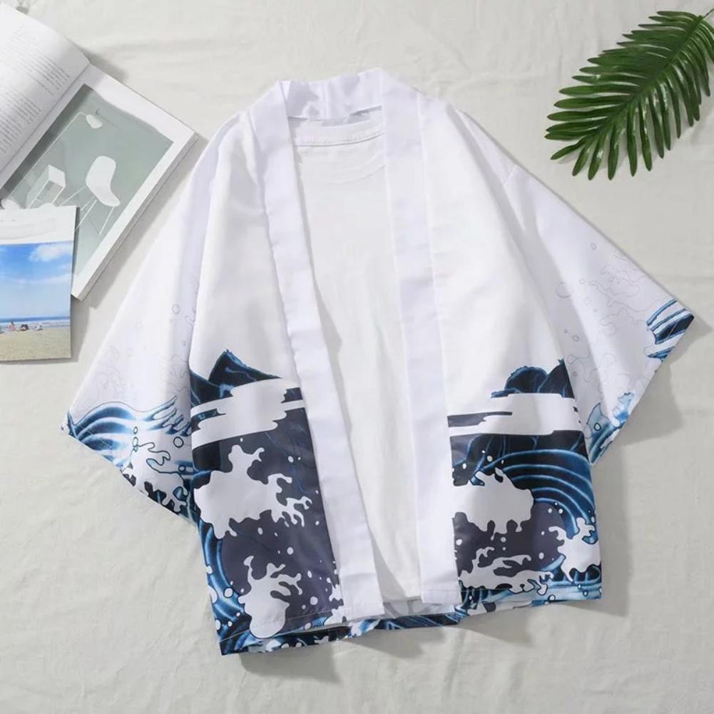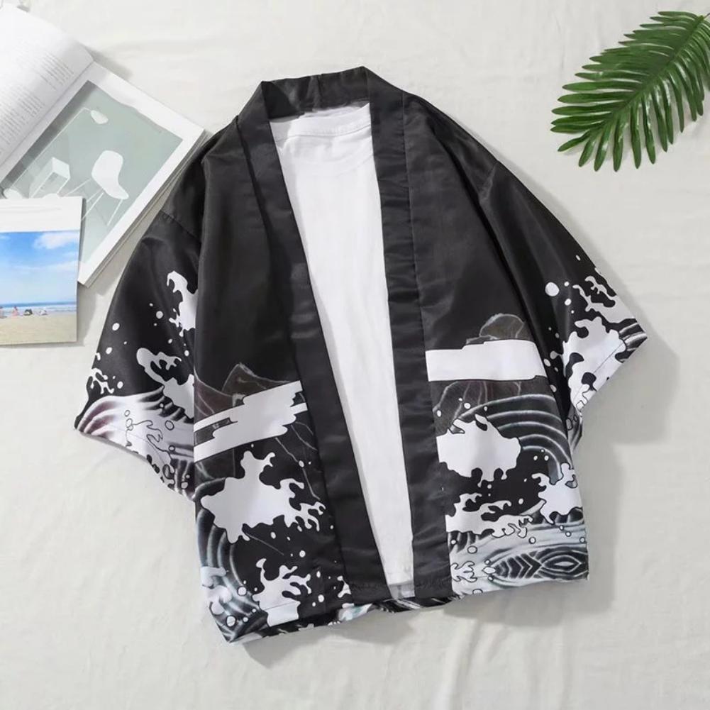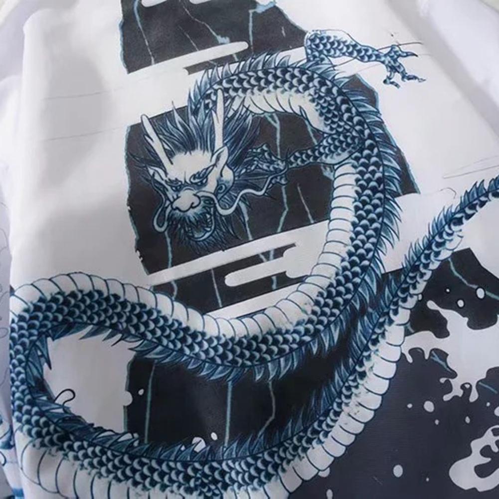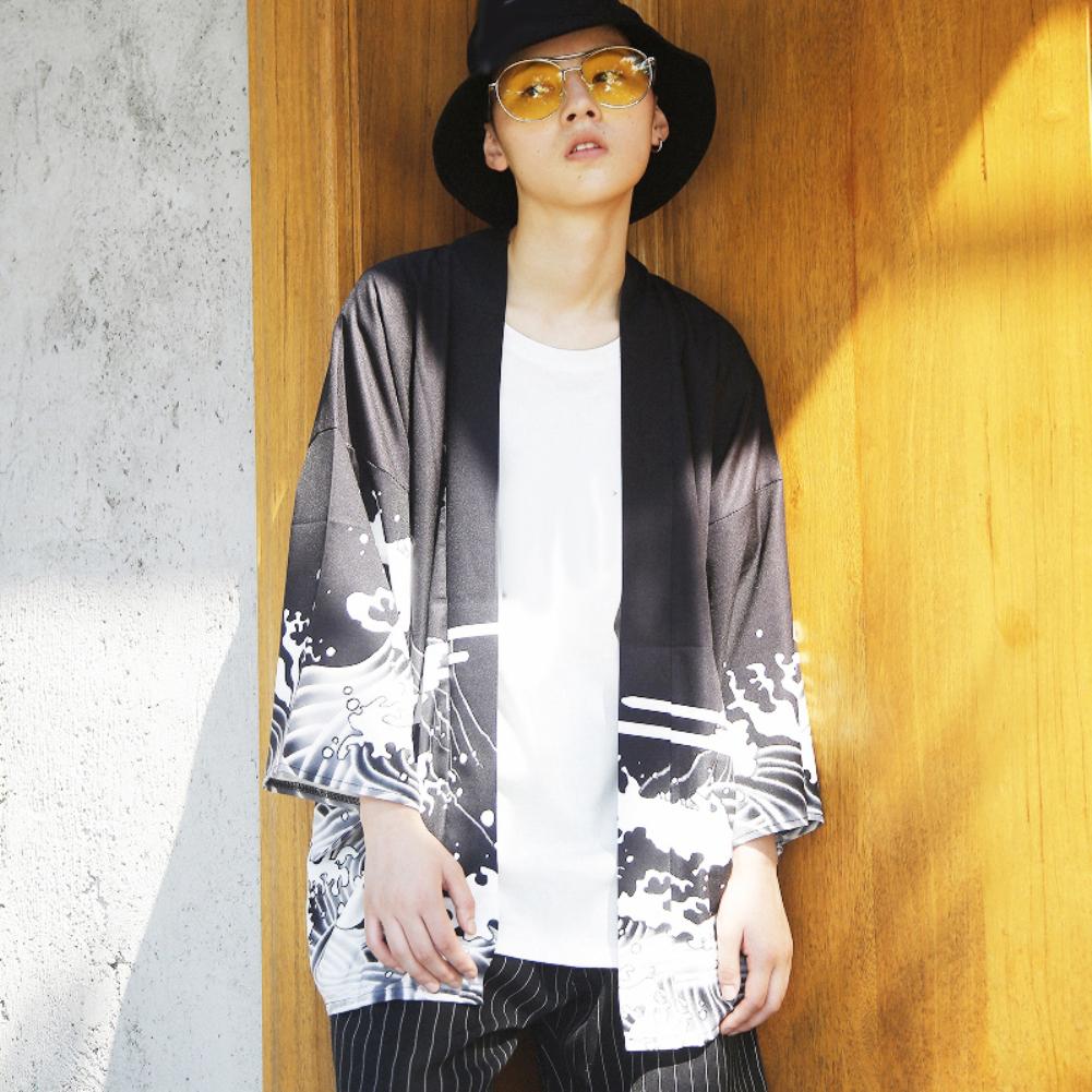 Повседневное мужское кимоно с рукавом 3/4 и волнистым драконом, кардиган Yukata, пальто, рубашка
