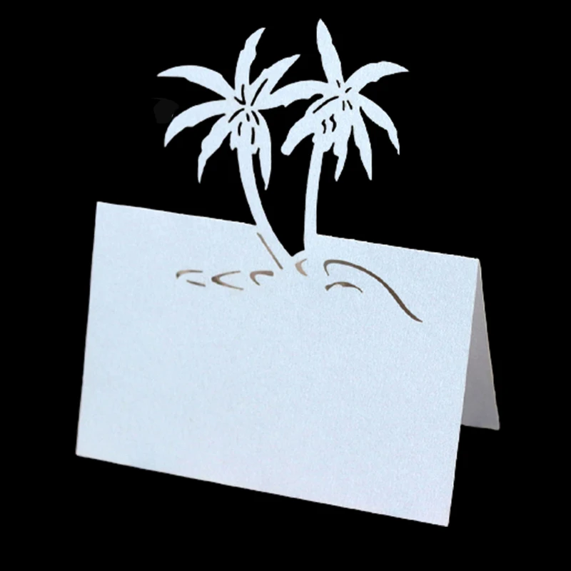 50pcs Coconut Tree Laser Cut Table Name Place Cards DIY Lace Name Message Setting Card Seat Wedding Birthday Party Favor Decor