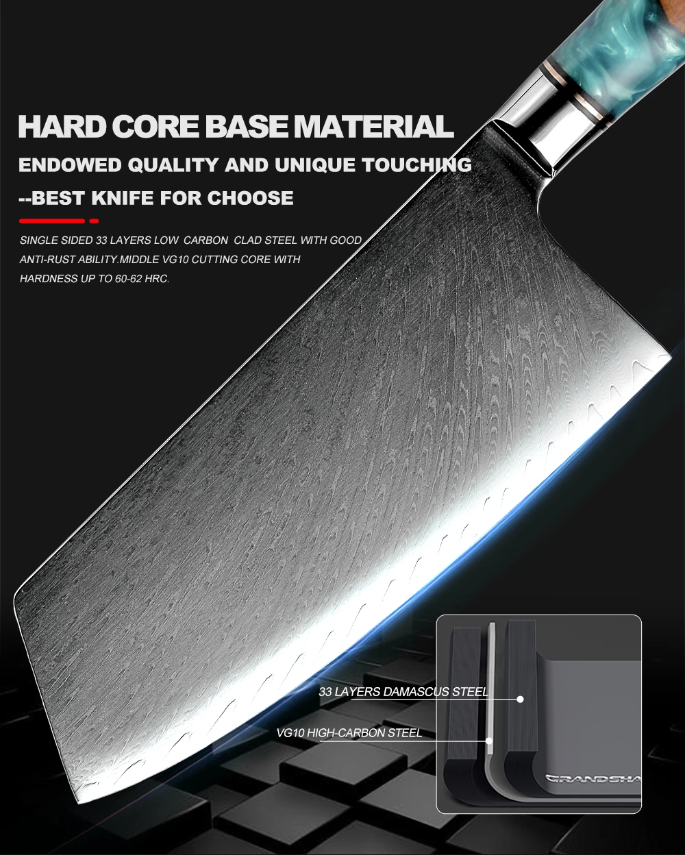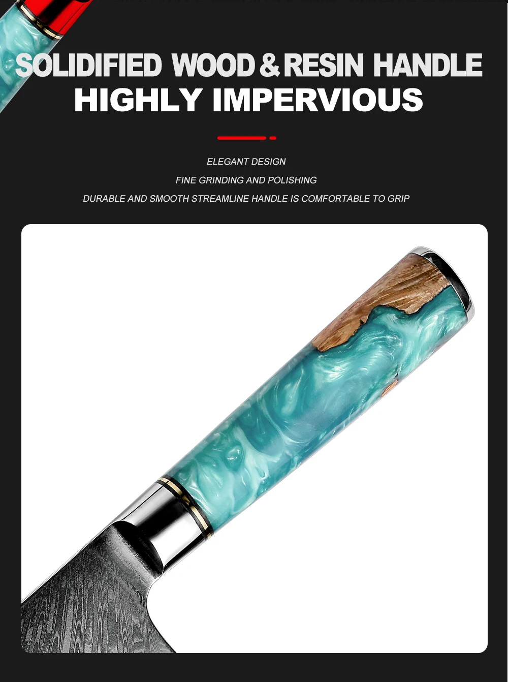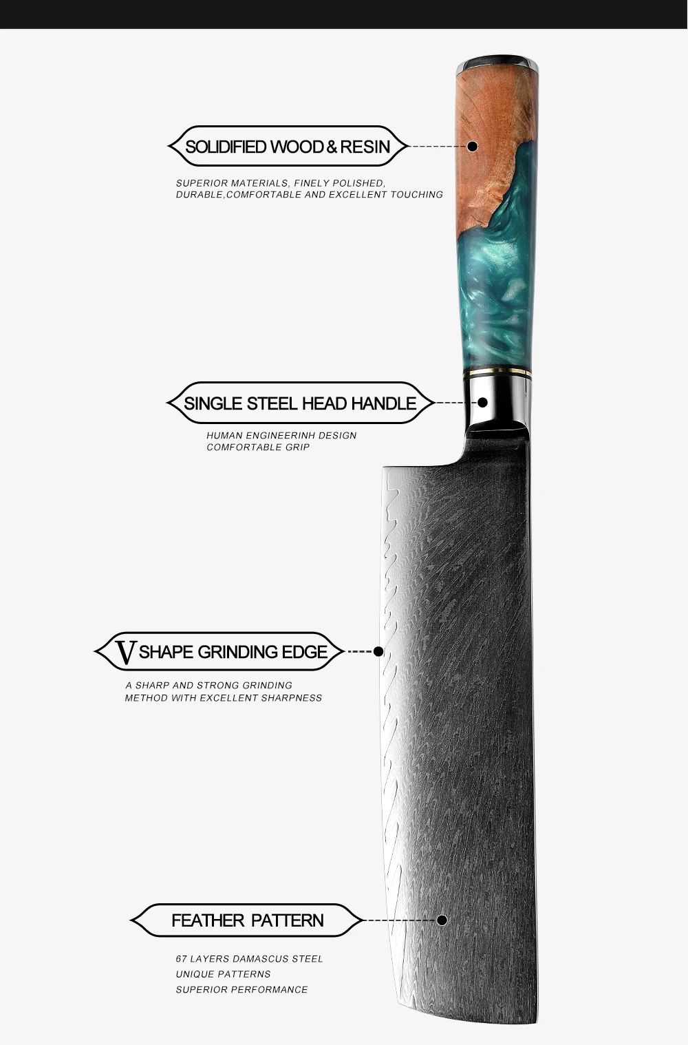Материал лезвия: 67 слоев дамасской сталиМатериал ручки:Смола +Затвердевшая древесинаПримечание: