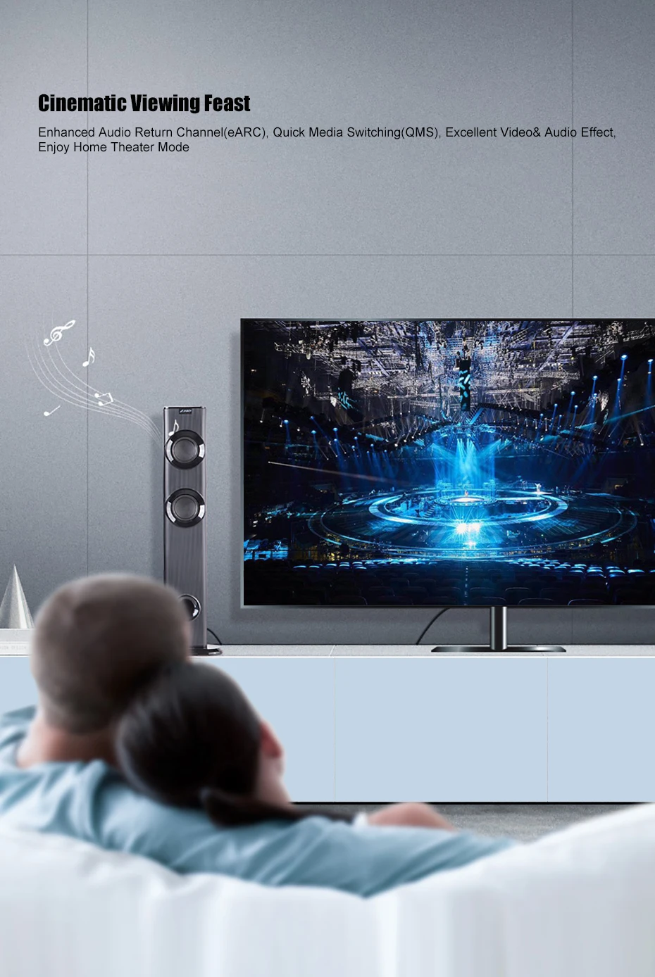 Спецификация: HDMI-совместимая версия: 2,1 (обратная совместимость с HDMI-compatible2.0/1,4/1,3) Разрешение: 8K @ 60Hz, 4K @ 120Hz Пропускная способность: 48 Гбит/с Поддерживаемые функции: · Динамический HDR · Улучшенный Канал возврата аудио (eARC) · Автоматический режим низкой задержки (ALLM) · Переменная частота обновления (VRR) · Быстрое переключение мультимедиа (QMS) · Быстрая транспортировка рамы (QFT) · HDR 10 +, Dolby Vision · DTS:X, Dolby Atmos · HDCP 2,2 и 2,3 · Ethernet · Дуга · CEC