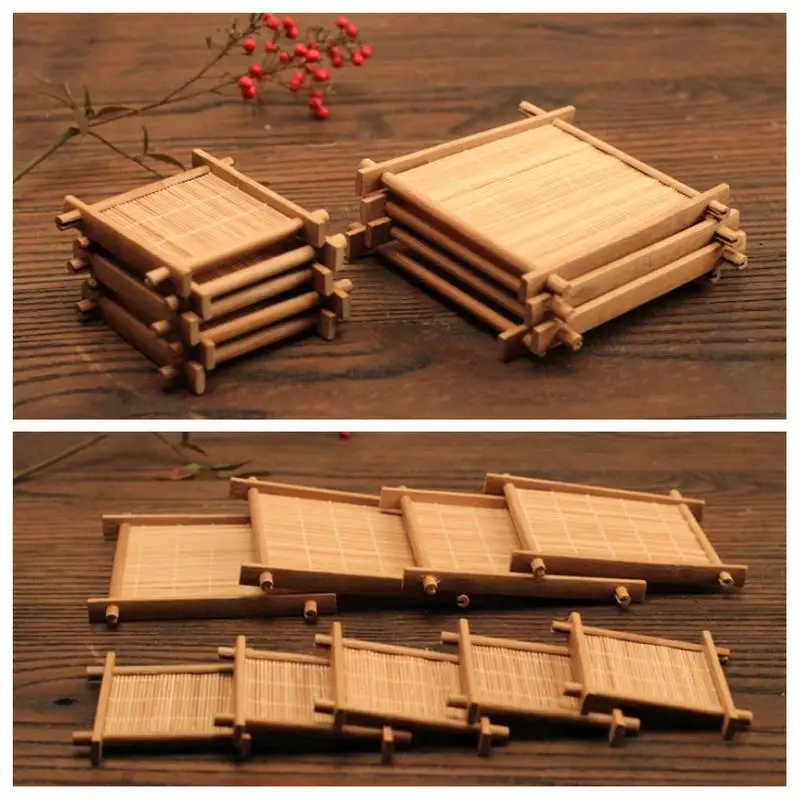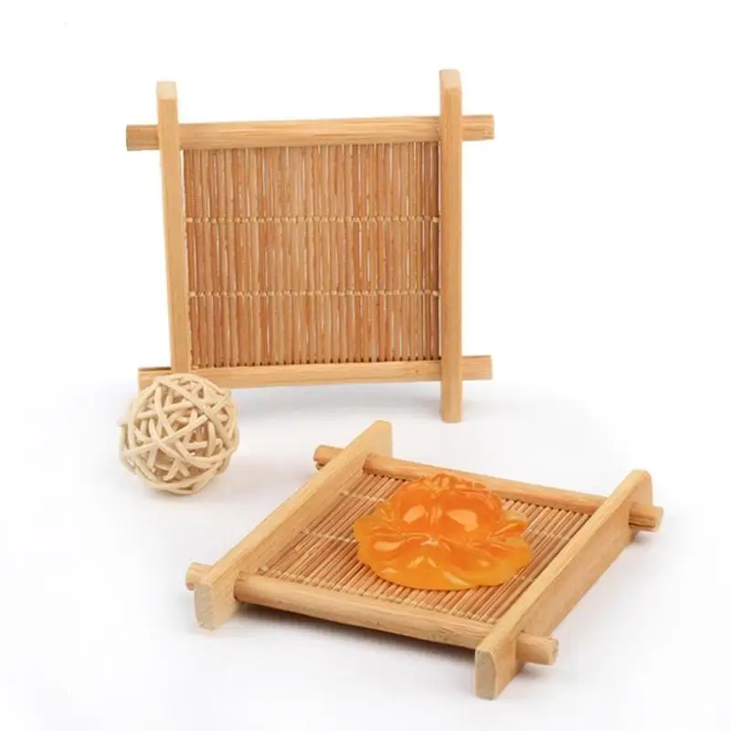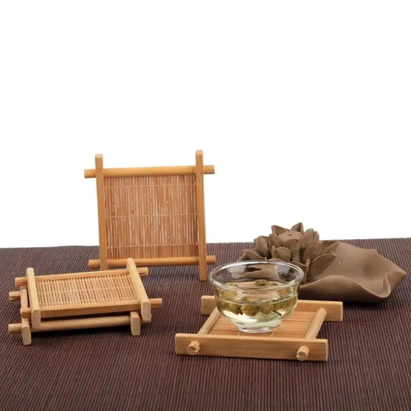 Домашний бамбуковый изоляционный коврик с квадратным подстаканником