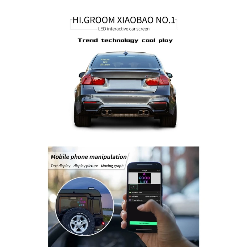 Светодиодный дисплей для автомобиля, приложение, управление, bluetooth, изображение, сделай сам, прокрутка, светодиодный, знак, полноцветный, автомобильный монитор заднего окна