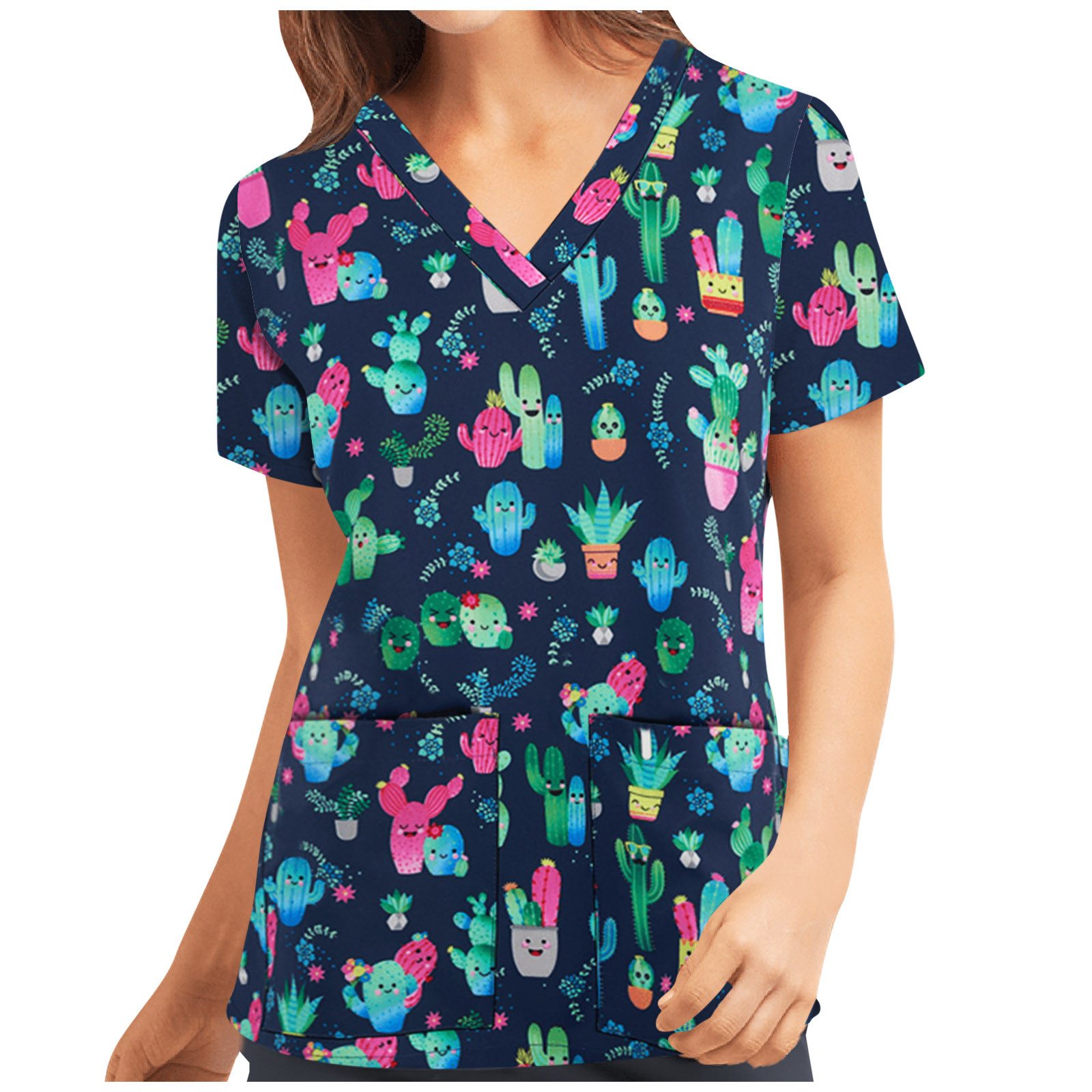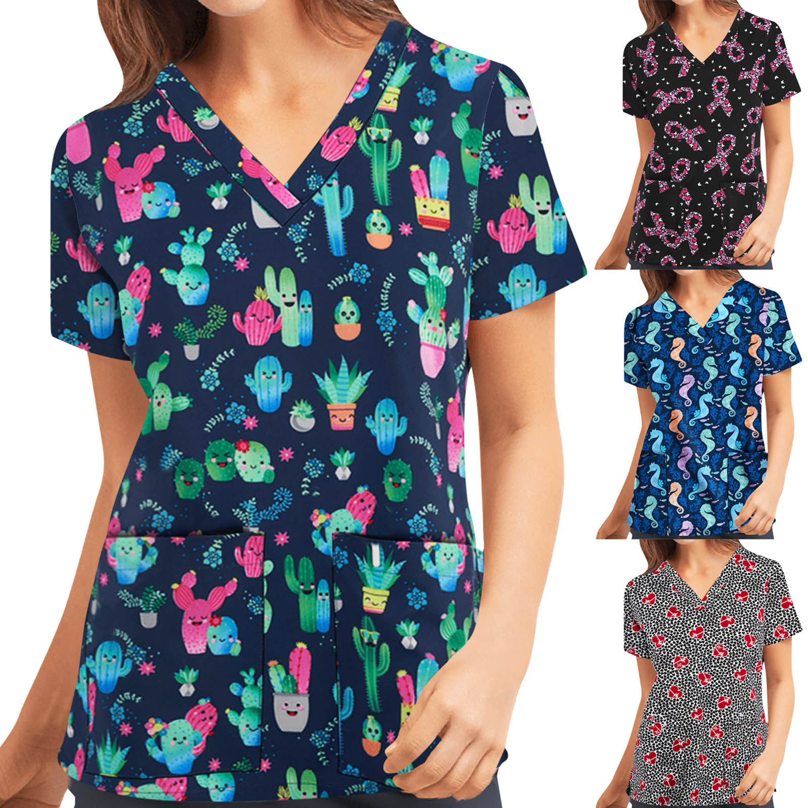 Медицинские работники, разноцветная форма медсестры с принтом, Женские топы с коротким рукавом и v-образным вырезом для больниц, топы Gorro Enfermera A40
