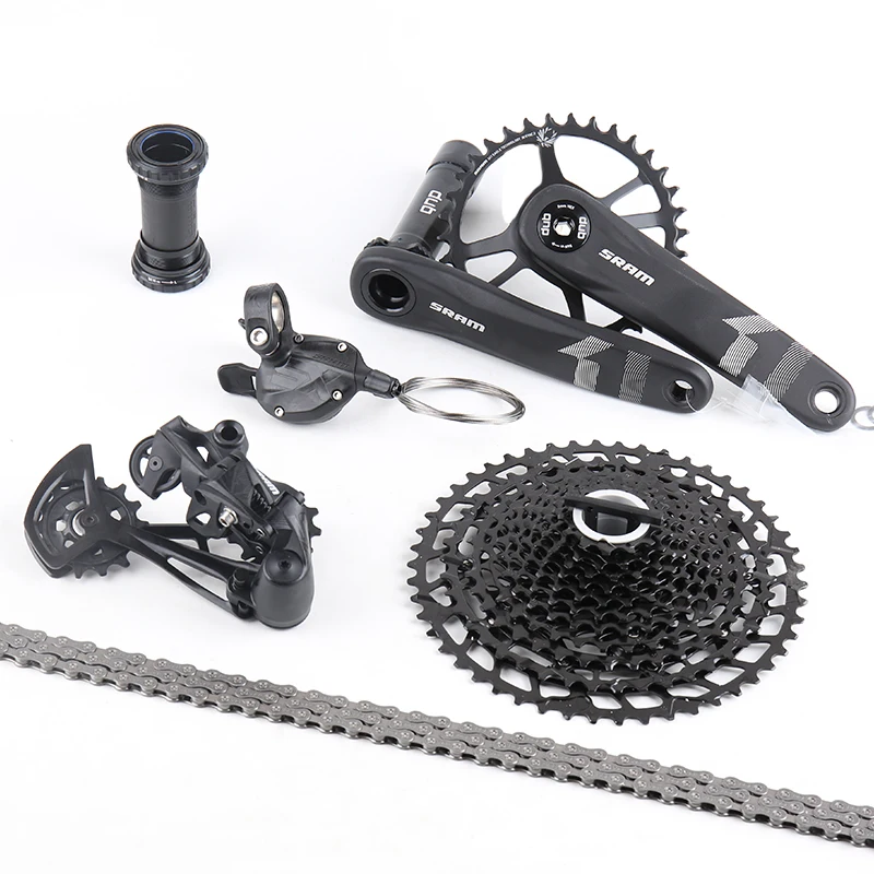 2019 SRAM SX EAGLE 12-скоростной рычаг переключения передач правый. X12021 SRAM SX EAGLE 12 задний переключатель скорости. x1Кассета SRAM SX EAGLE PG1210 12 Скоростей 11-50T.x1 (совместима с концентратором HG)YBN 12-скоростная цепь 126L с link-power.x1SRAM SX/X1 1000 DUB шатуны. x1Каретка DUB. x1