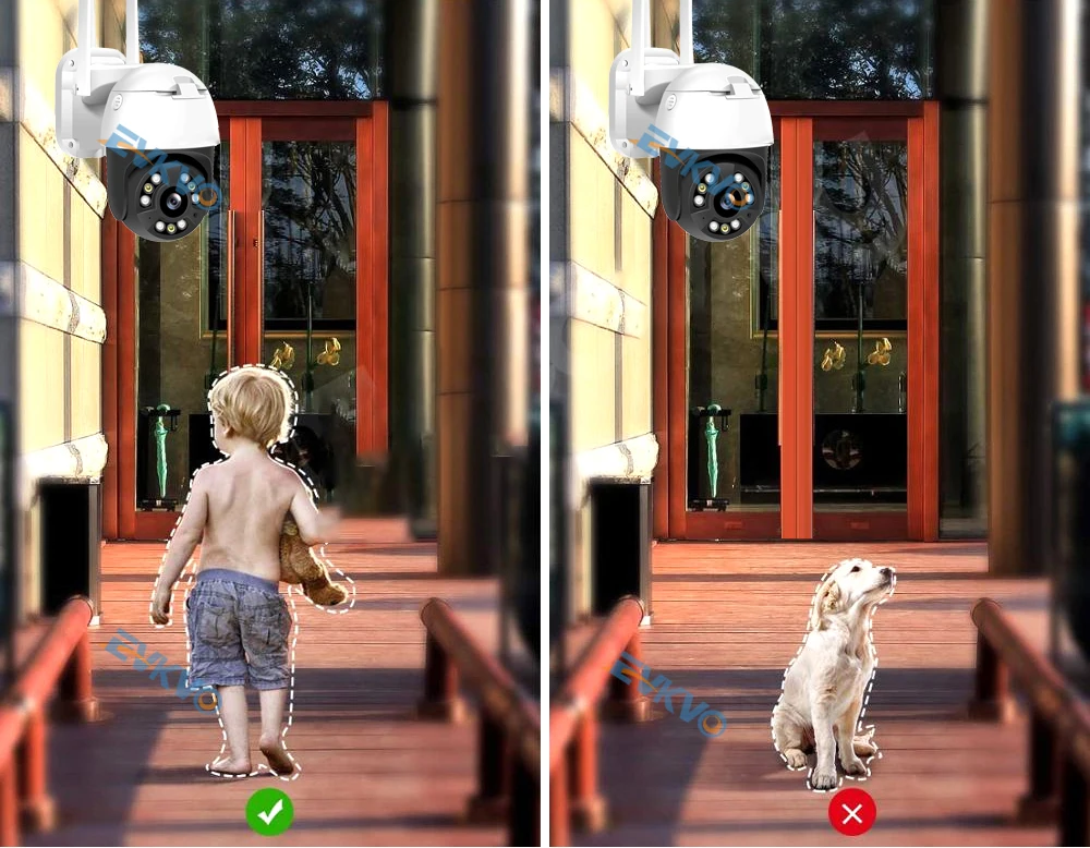Камера поддерживает Обнаружение зоны и обнаружение кордона, поддерживает белый светильник, сирена и звуковой сигнал, когда эти функции работают одновременно, это помогает уменьшить Ложные оповещения 90%!