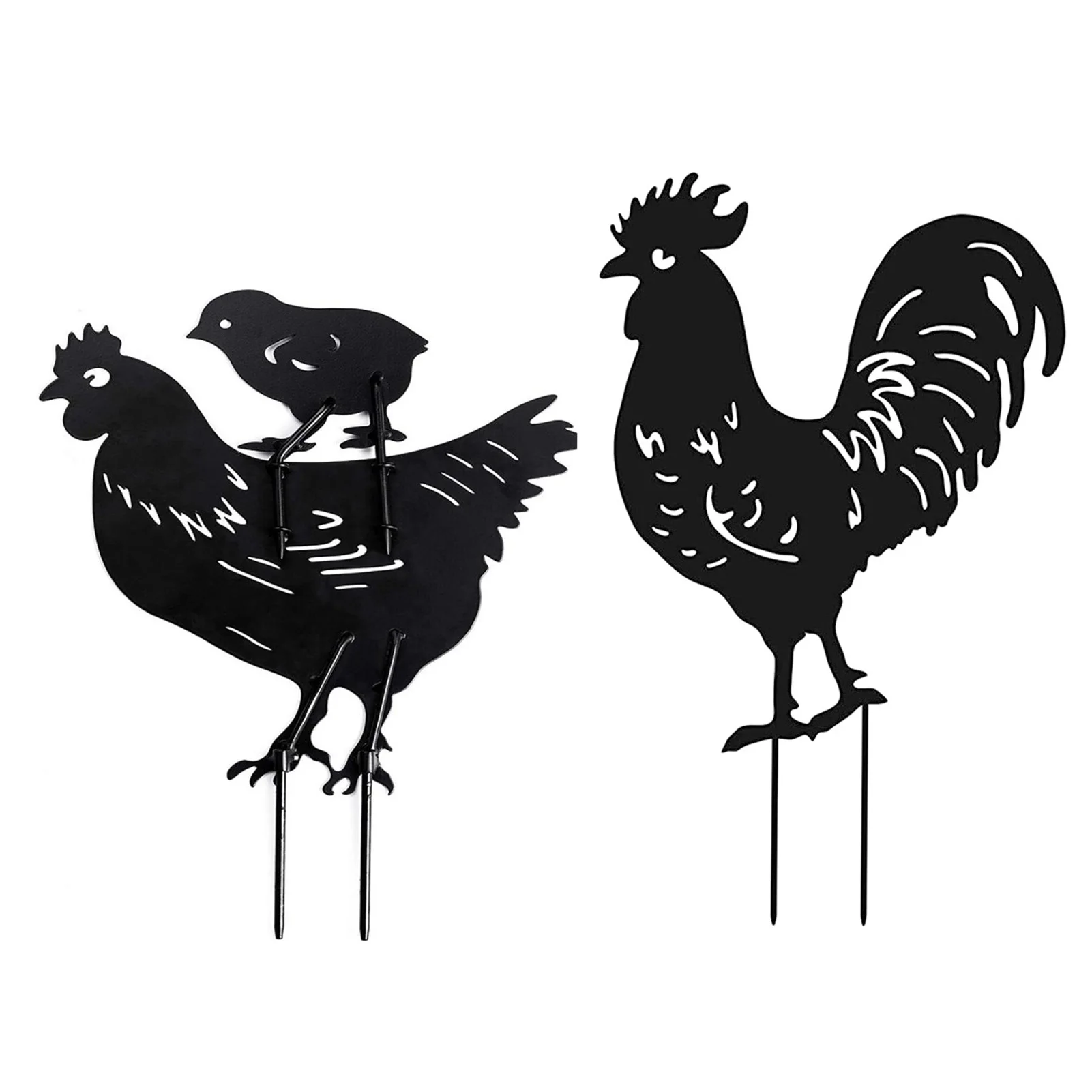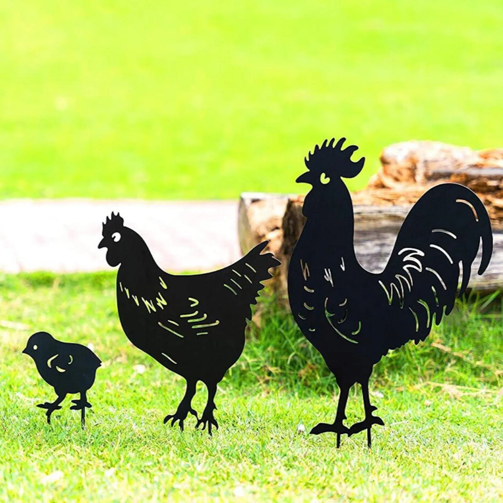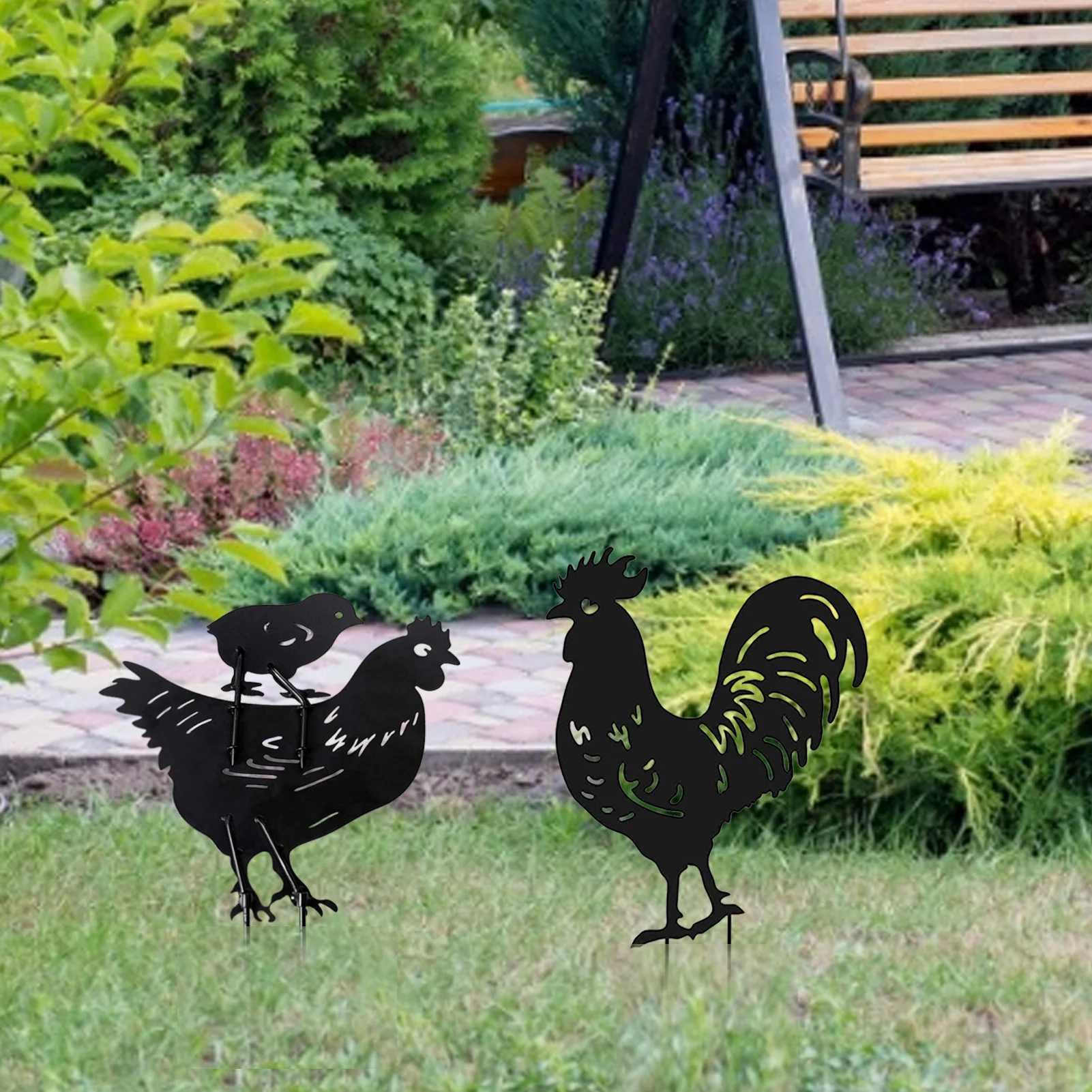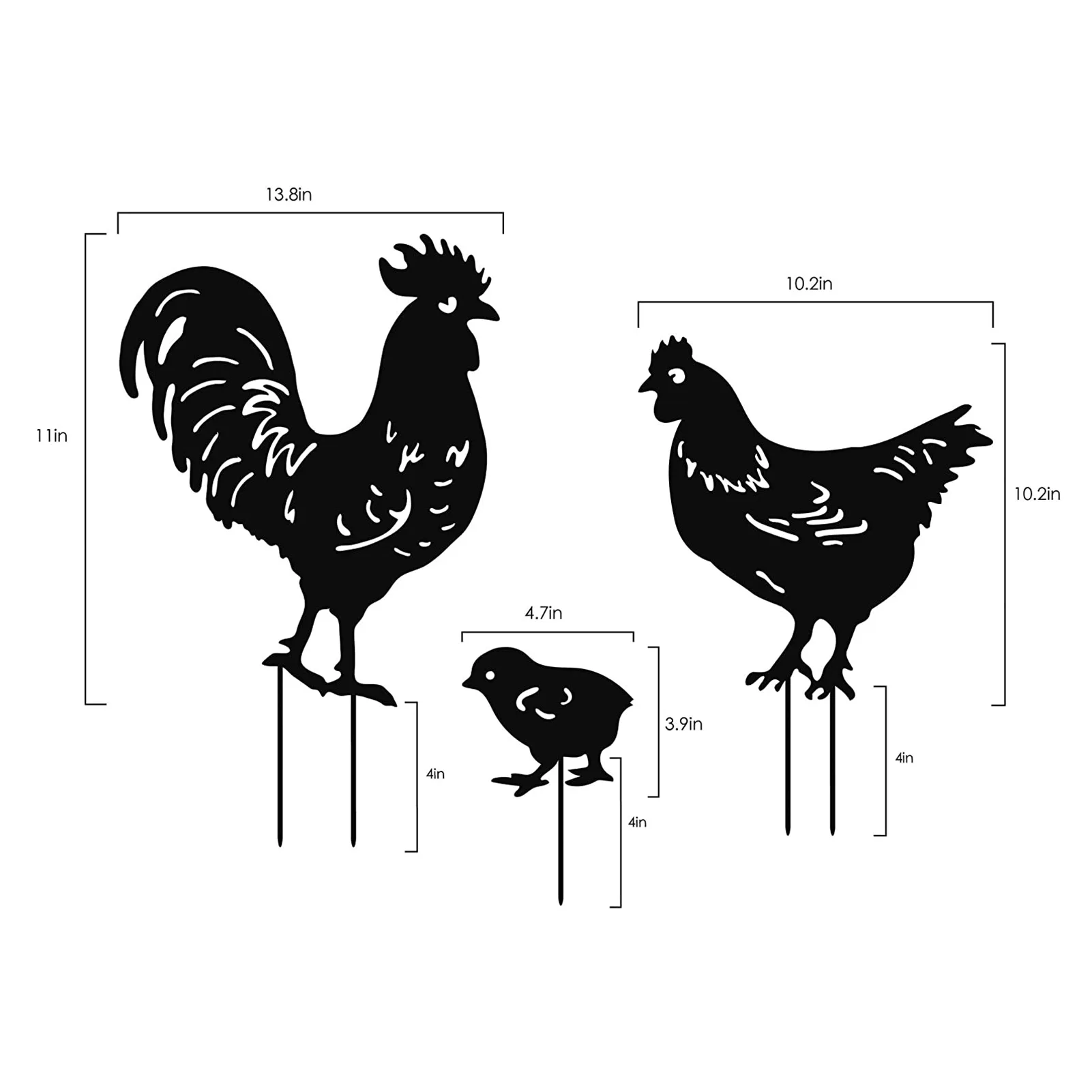 3 шт. металлическая садовая фигурка курица скульптура задний двор газон предметы домашнего интерьера курица + Петух + Маленький Цыпленок пасхальное украшение