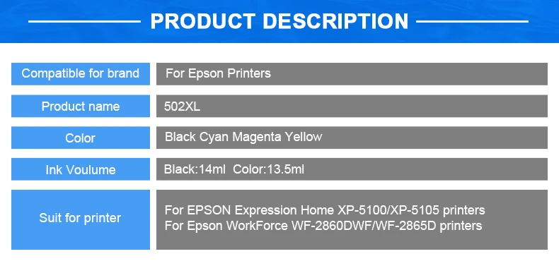 4 шт. для Epson T502 XL пурпурный чернильный картридж