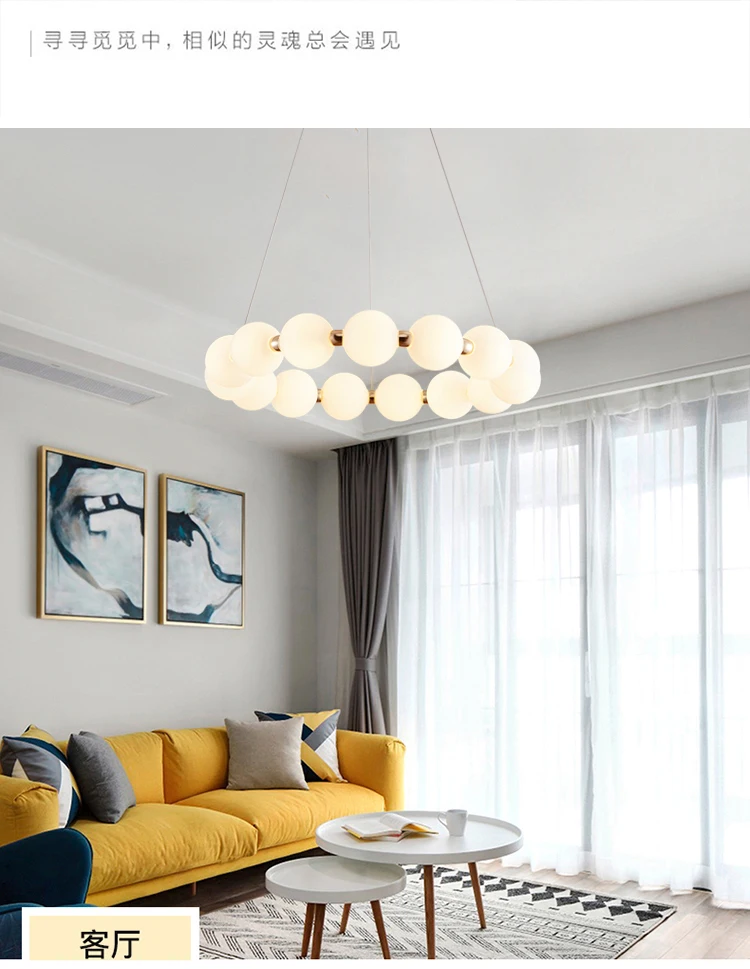 Корпус лампы: золотой + белый Материал: медь + стекло Светильник источник света: светодиодный Подходит для: гостиной, столовой, спальни, виллы, лобби Размер: 12 головок-диаметр 33 см 15 головок-диаметр 50 см 18 головок-диаметр 60 см 21 головка-диаметр 70 см 24 головки-диаметр 80 см (Регулируемая подвесная линия)