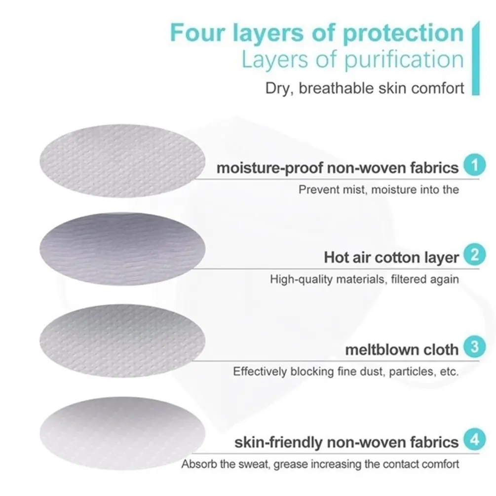 2. Мелтдувная ткань: маска изготовлена из мелтдувного материала, который обладает хорошей устойчивостью к коже и комфортом при ношении.