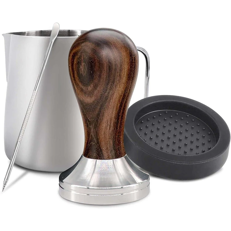 Тампер 51 мм из нержавеющей стали для кофе, включая тампон для эспрессо. Тамперный коврик, молочный кувшин, ручка бариста-набор бариста