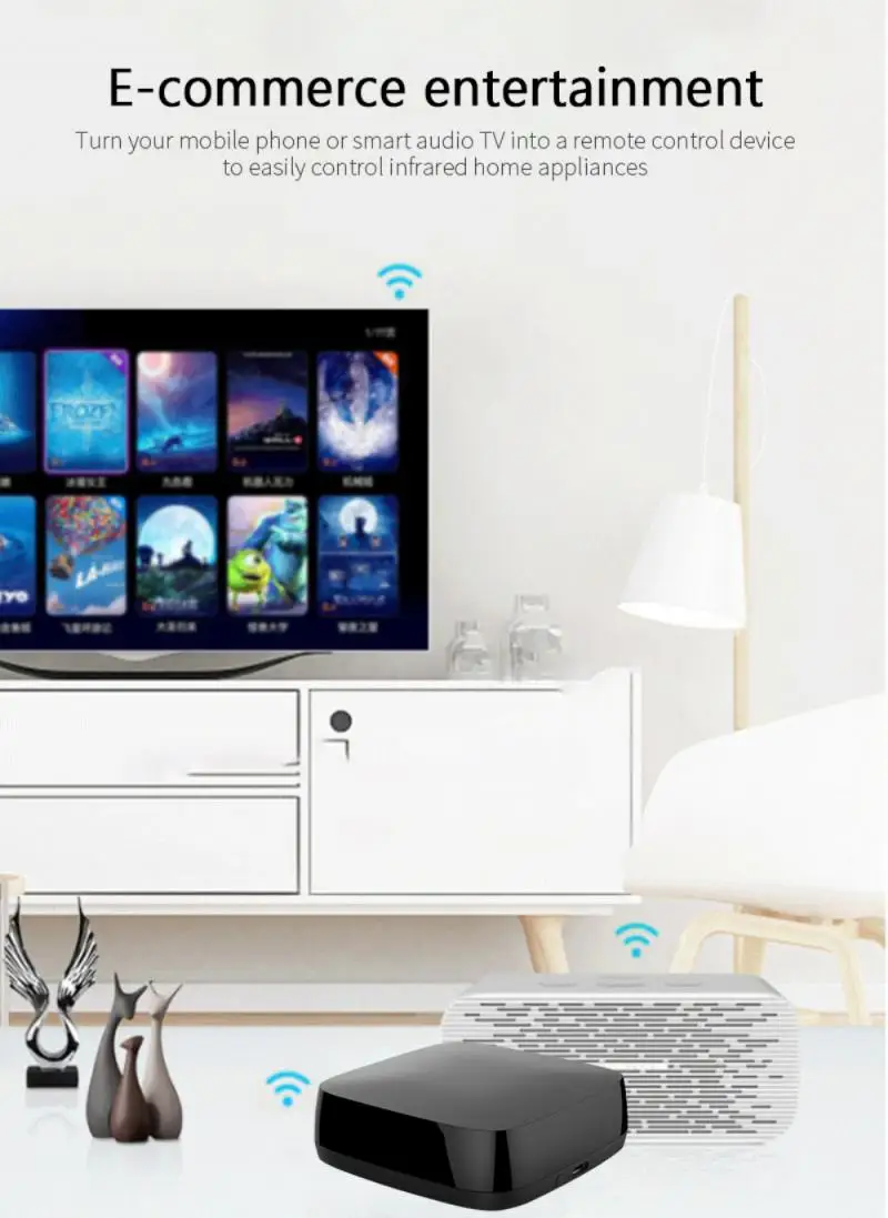 Совместим с Alexa/Echo, Google Home для голосового управления вашим телевизором, STB, кондиционером и вентиляторами. Устройство поддерживает только 2,4G WiFi.