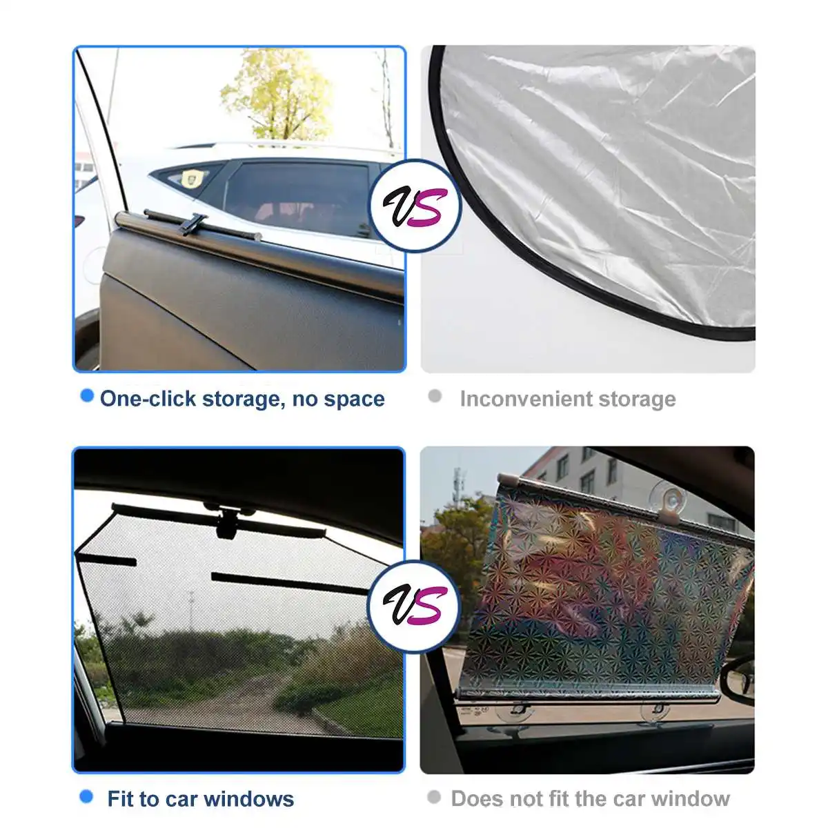 【Защита от солнца】Шторка автомобильного окна идеально подходит для защиты от солнечных бликов и тепла. На выдвижной козырек от солнца блокирует вредные УФ-лучи. Защитите ваших детей, домашних животных и Ваших близких от жаркого лета, уменьшая температуру салона автомобиля, и это делает ваш автомобиль более прохладным.