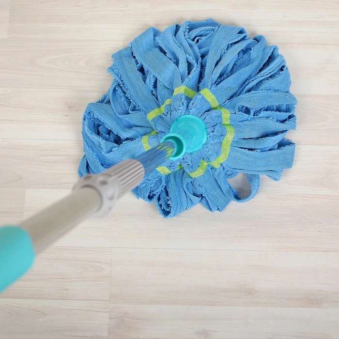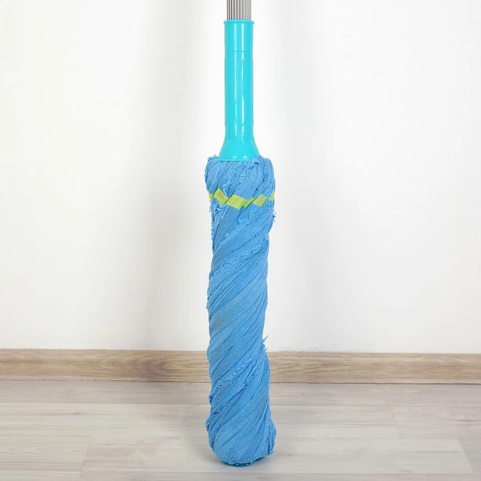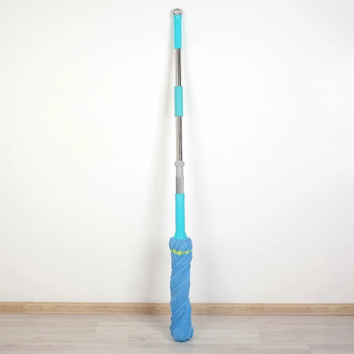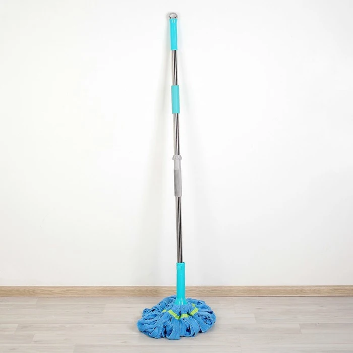 Швабра с отжимом Доляна, стальная ручка 130 см, насадка микрофибра, цвет голубой