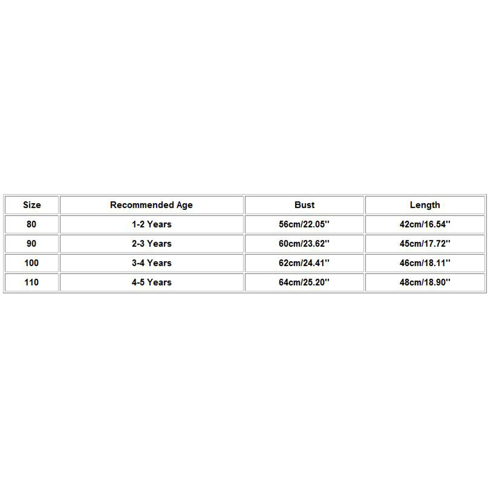 Размер Рекомендуемый возраст Бюст Длина 80 1-2 года 56 см/22,05'' 42 см/16,54'' 90 От 2 до 3 лет 60 см/23,62'' 45 см/17,72'' 100 От 3 до 4 лет 62 см/24,41'' 46 см/18,11'' 110 От 4 до 5 лет 64 см/25,20'' 48 см/18,90''