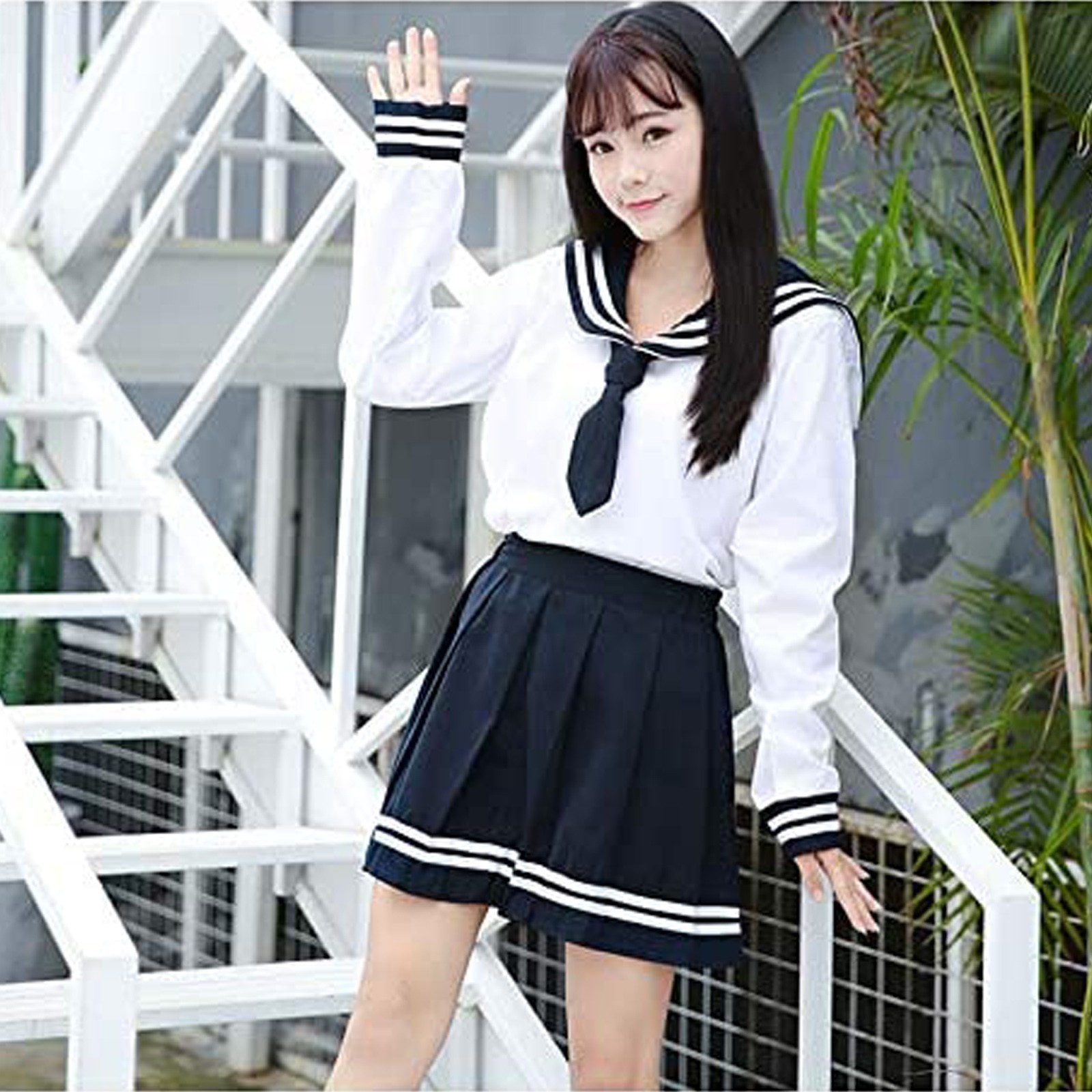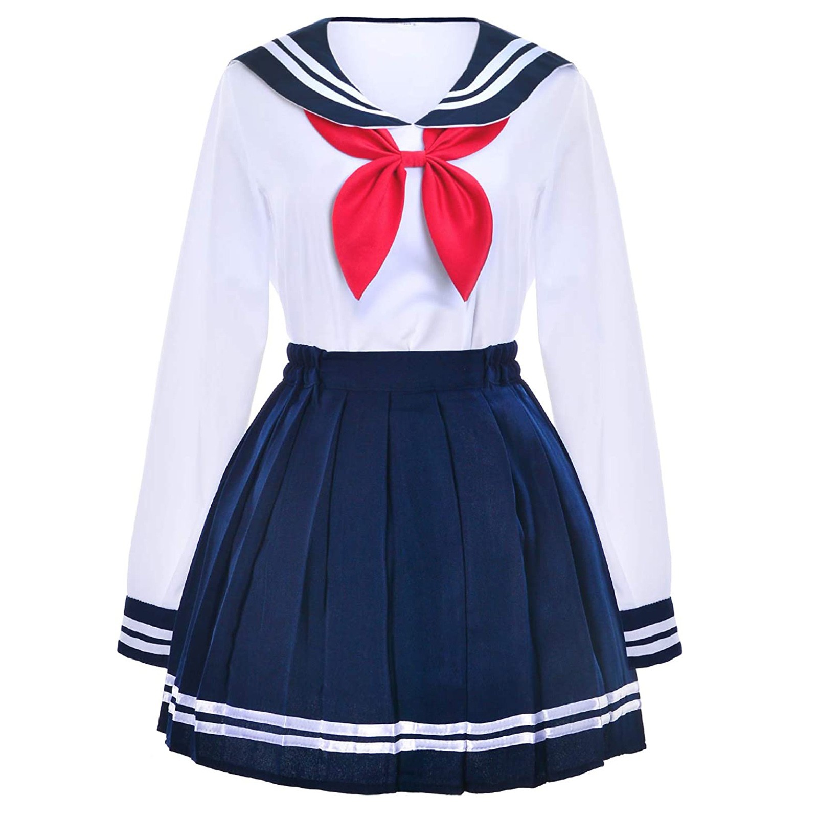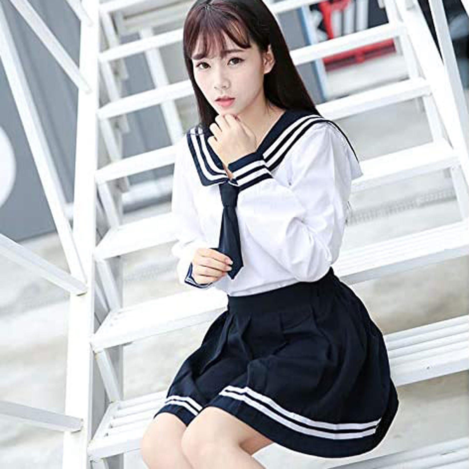 3. Японское платье для косплея с длинными рукавами в морском стиле, японская Классическая школьная форма, плиссированная мини-юбка темно-синего цвета, плиссированная юбка для катания на коньках, модные и ультрамодные.