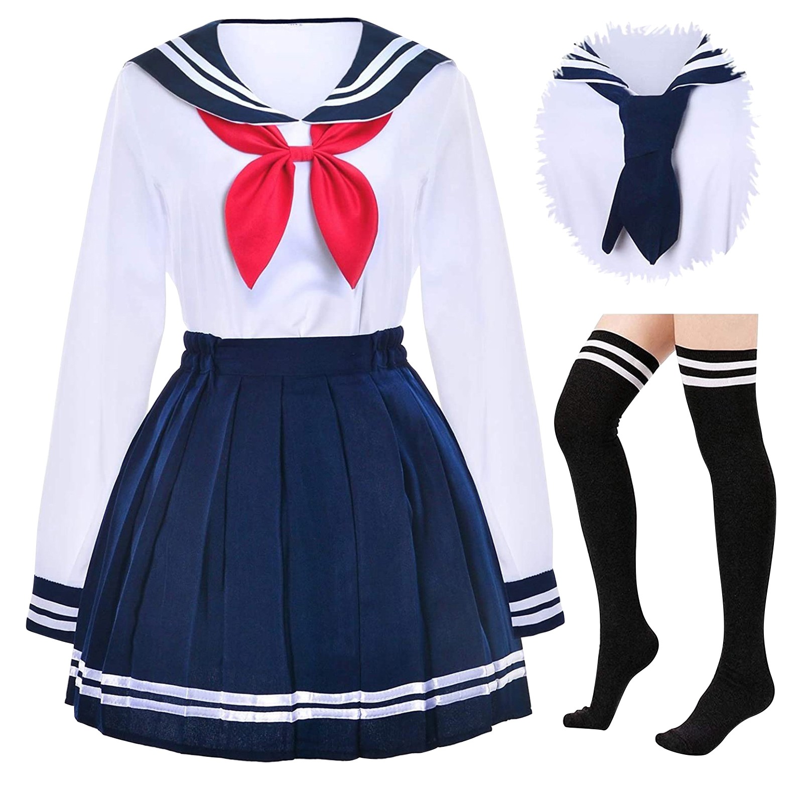 4. В комплект входит: рубашка * 1 + юбка * 1 + темно-синий галстук * 1 + красный шарф * 1 + Гольфы выше колена * 1.