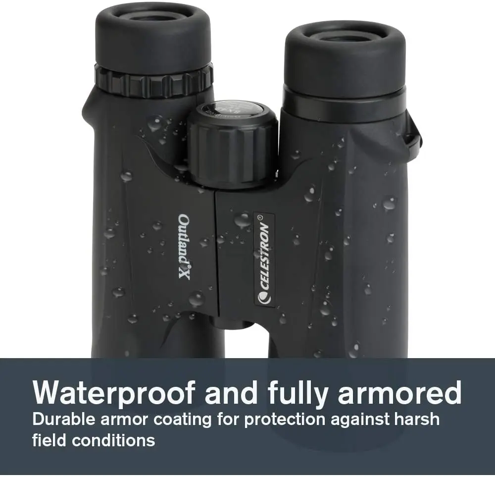 Резиновое покрытие Outland X обеспечивает грубую и жесткую обработку, а бинокль является водонепроницаемым и защищенным от влаги и очищенным азотом для использования во всех погодных условиях. Большие ручки для фокусировки обеспечивают легкость и точность фокусировки и скручивание наглазников позволяют быстро регулировать рельеф глаз, чтобы получить полное поле зрения.