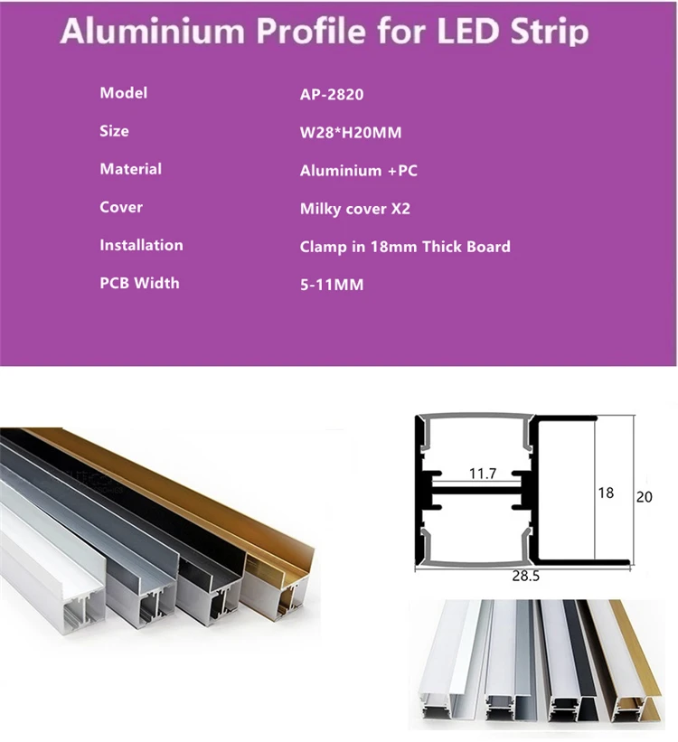 * Номер товара: AP-2820 * Размер: l1000xw28xh20 мм * Материал: алюминиевый корпус + чехол из молочного поликарбоната * Ширина печатной платы: 5-11 мм * Цвет корпуса черный/серебристый/золотистый/серый Только профиль опции без полосы Вариант 3000K/4000K/6000K с полоской 12V, и кабель находится на 1 стороне, если вам нужна другая версия, пожалуйста, свяжитесь с продавцом Полоса 2 в каждом профиле сверху и снизу Трансформатор должен быть куплен самостоятельно