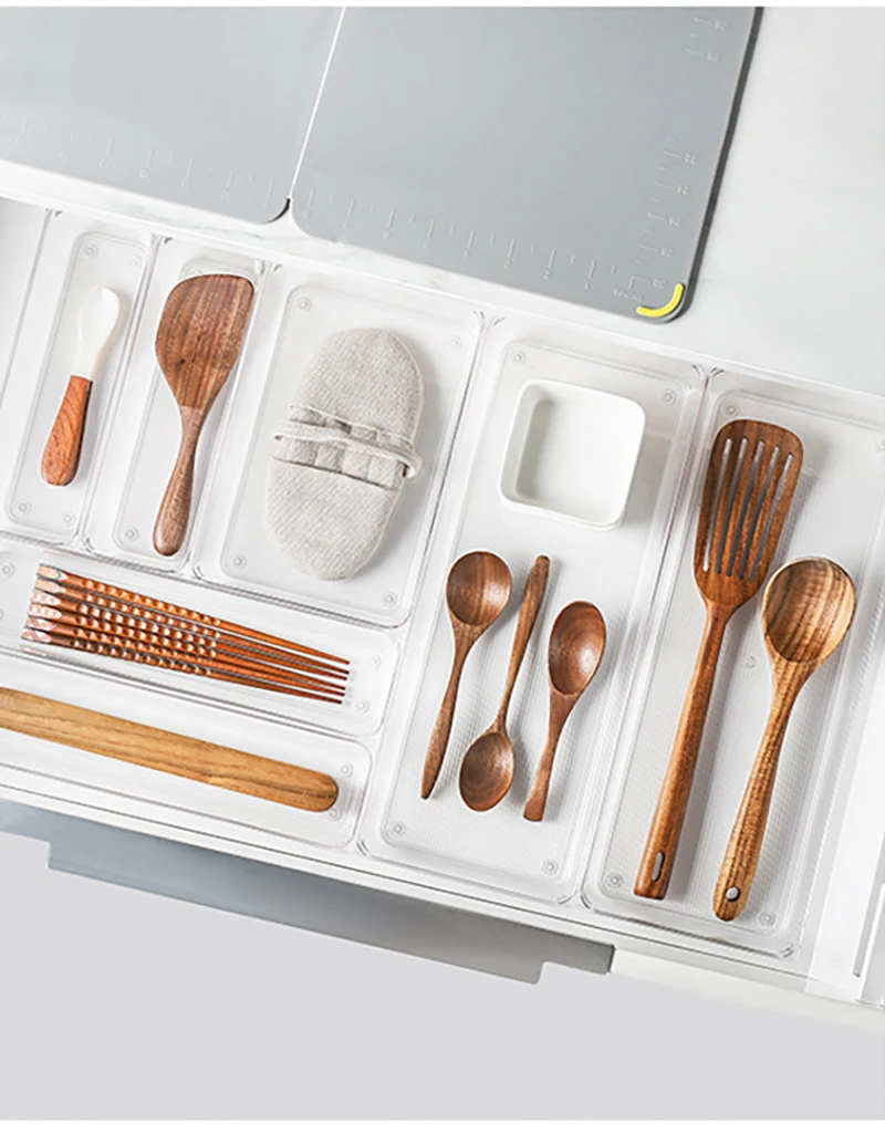 Прозрачный ящик для хранения, органайзер для посуды, столовых приборов, для кухни, ванной, офиса