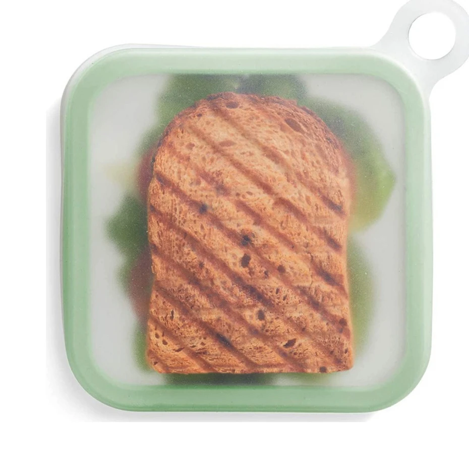 Items: Silicone food bags Type: Reusable Silicone Sandwiches Toast Container Material: silicone (the material of frame is PP, please take off the PP frame for fixing before put it into the microwave. ) Resistant temperature: 350℉ Package: 1 Piece Specification: 6.1x6.x0.59 inch Wide Application: The sandwich box is great for students, teens, office workers to carry their lunch. Also can be used for picnics, keeping baby snacks, food storage, etc.