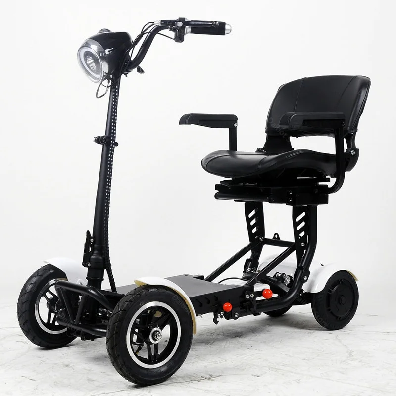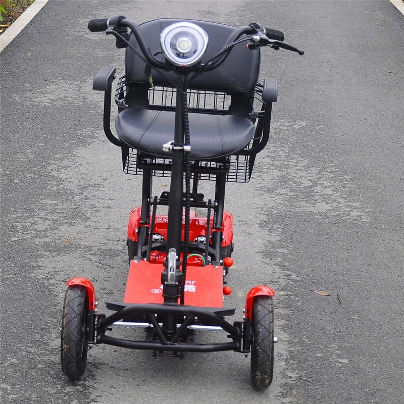 Foldable four-wheeled scooter, easy to store when folded, unfolding electric car when using, front and rear LED headlights, high-brightness LED headlights, obvious rear taillights, warning of rear vehicles.