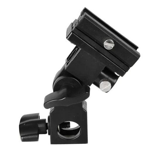 Этот держатель кронштейна разработан с одним регулируемым креплением для горячего башмака и одним отверстием для удерживания зонта. Для вас полезно подключить штатив-трипод под светильник-вспышку и мягкий зонтик, который поможет вам получить оптимальный угол для отличного фотографического результата.