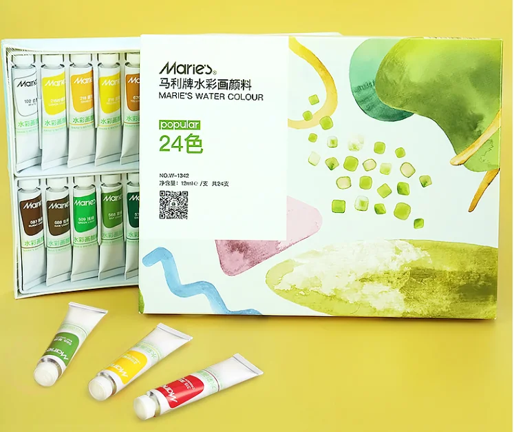 Бренд: Marie's Название продукта: «Marie» 24 цвета трубки акварельных красок Место происхождения: Шанхай Спецификация: 24 цвета/коробка Пигмент: 12 мл/трубка Введение: Акварельная трубка Marie's 24 цветов, яркий цвет, деликатная паста, высокая прозрачность, чистый и яркий цвет, можно тонировать, смешивать и смешивать с водой по желанию для достижения желаемого эффекта. Большая трубка объемом 12 мл, подходит для начинающих и студентов для использования пигмента, прост в использовании и не дорого, особенно доступно ~