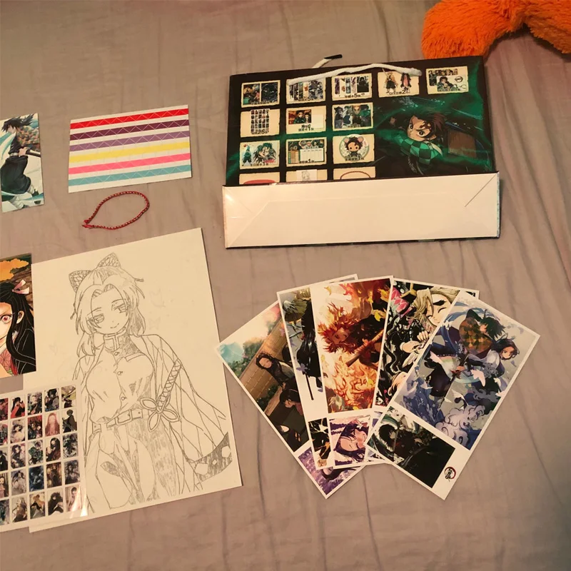 Название продукта: аниме демон Slayer: Kimetsu no Yaiba lucky gift bag toy включает в себя открытку плакат значок наклейки Закладка рукава подарок Размер: 30*28 см Посылка включает в себя: Lucky Размер сумки: 30*28 см Посылка включает в себя: Открытка * 2 Коллекционная карта * 5 Наклейка * 102 Постер * 2 Бумага * 1 Подставка * 2 Значок * 1 Браслет * 1 Ручной ремешок * 1 Закладка * 2 Расписание класса * 1 Эскиз * 1 Открытка на день рождения * 1 Карта сообщения * 1 Кошелек для карт * 1 Lucky bag * 1